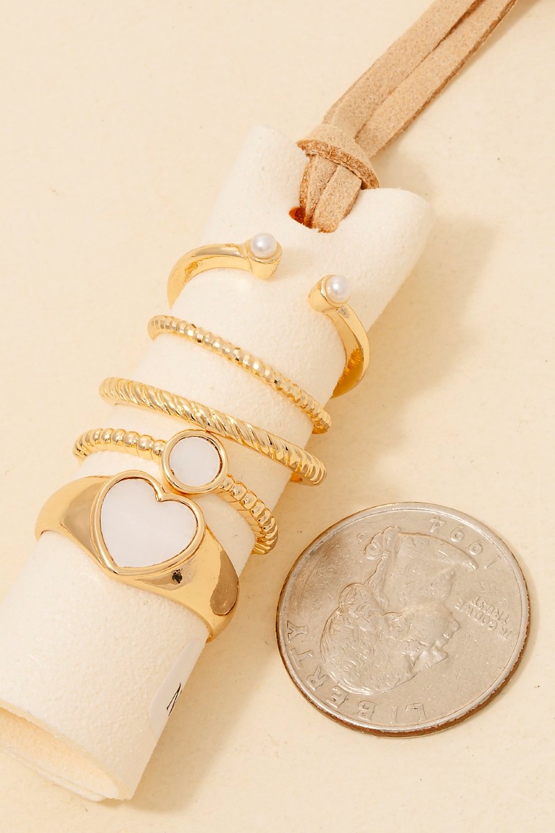 • This ring set brings a unique 5pc heart and pearl band rings set style. Discover the perfect balance of subtlety and flair as this ring set effortlessly completes your look.