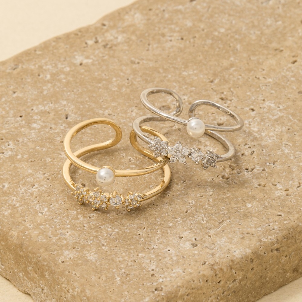 Pearl Stud Layered Open Band Ring