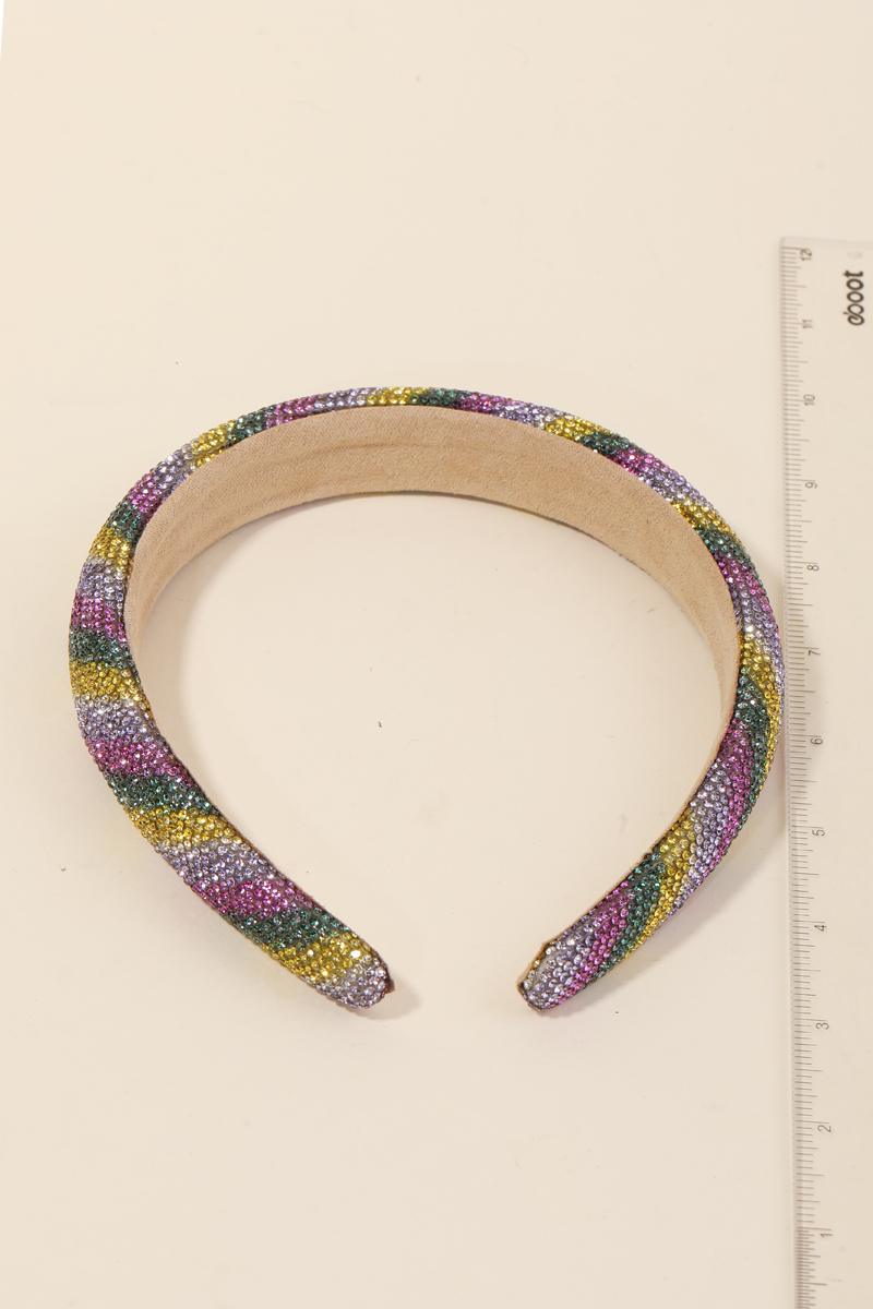 This piece is both elegant and versatile, this headband brings a one-of-a-kind pave mardi gras rhinestone design. Elevate your style effortlessly with this versatile headband, enhancing the appeal of any ensemble. Available in MULTI. This item is sold in packs of 1.