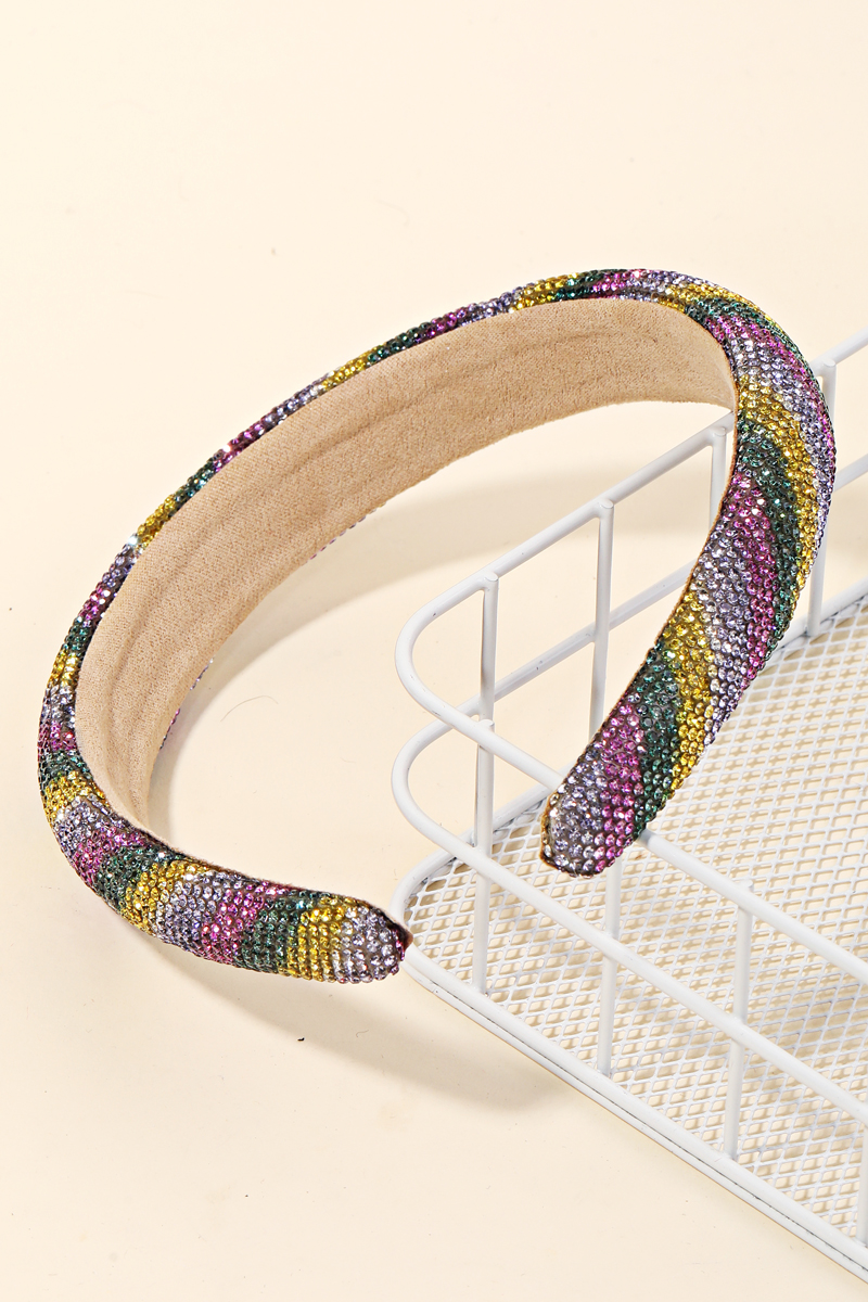 • An instant wardrobe staple, this headband features a distinct pave rainbow rhinestone headband design. Perfect for any occasion, this versatile accessory will enhance any outfit you wear. This item is sold in packs of 1.