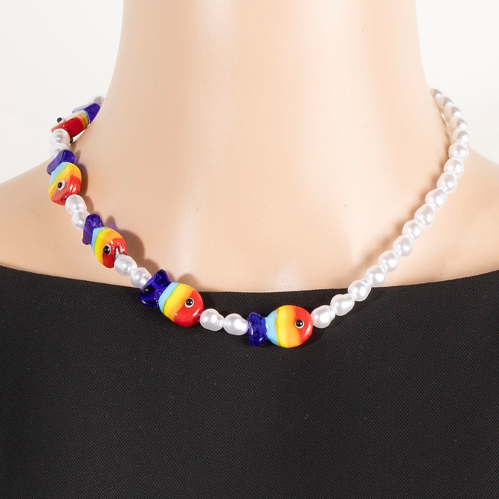 • Perfect for any fashion-forward individual, this necklace adds a distinctive pearl and rainbow fish beads design. This necklace is a great way to add some glamour and sophistication to your outfit. Available in MU. This item is sold in packs of 1.