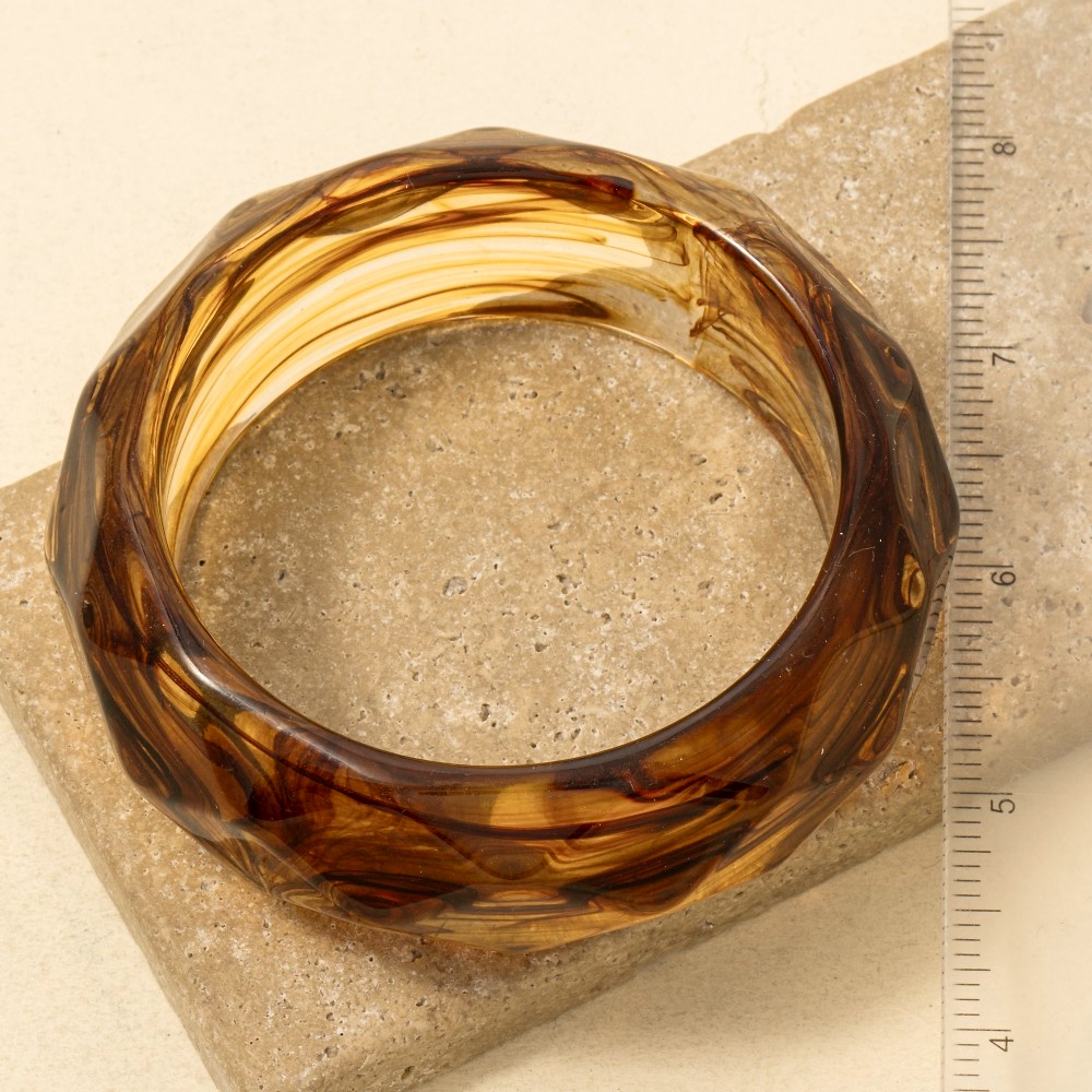 • Perfectly versatile and endlessly stylish, this bangle bracelet showcases an alluring faceted light amber resin design. Elevate your fashion ensemble effortlessly with this versatile bangle bracelet, a stylish choice for the modern trendsetter. Available in BRN. This item is sold in packs of 1.