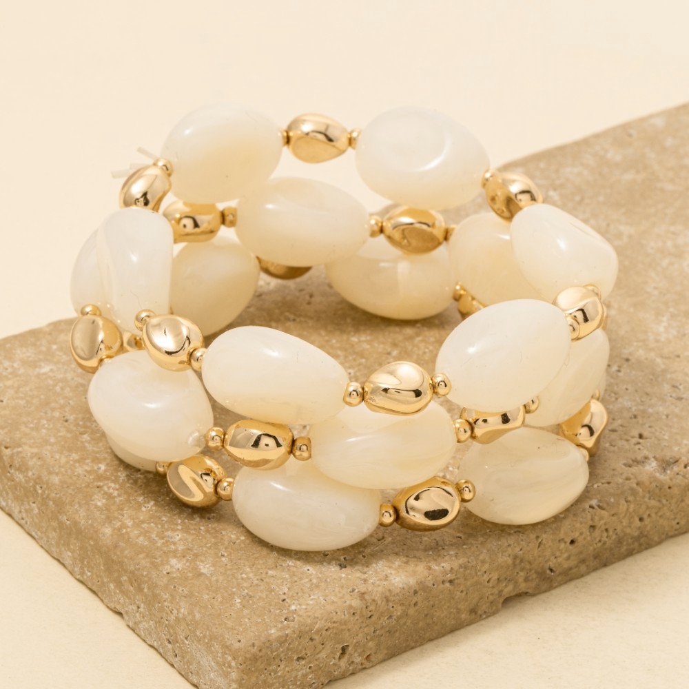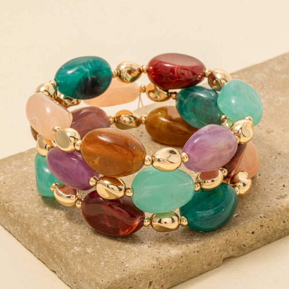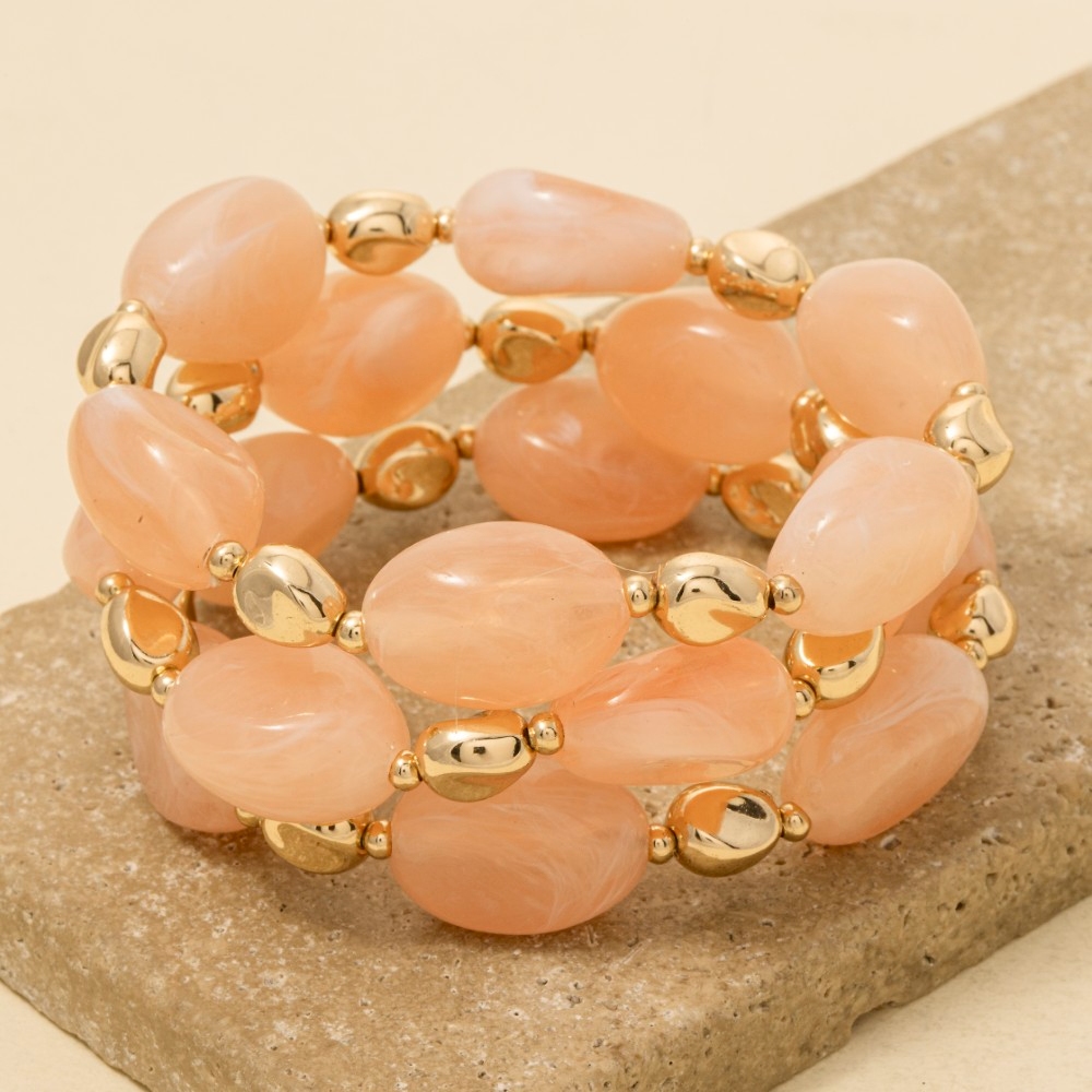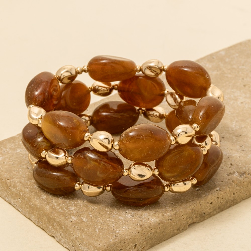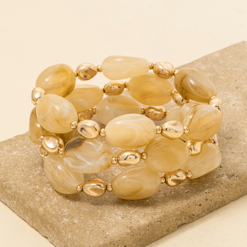 • The perfect way to complete any outfit, this bracelet highlights a special irregular marble resin and metallic beaded set design. This item is a great way to add some texture and dimension to any outfit. Available in BPINK, BRW, MUL, NAT, WHT. This item is sold in packs of 1.