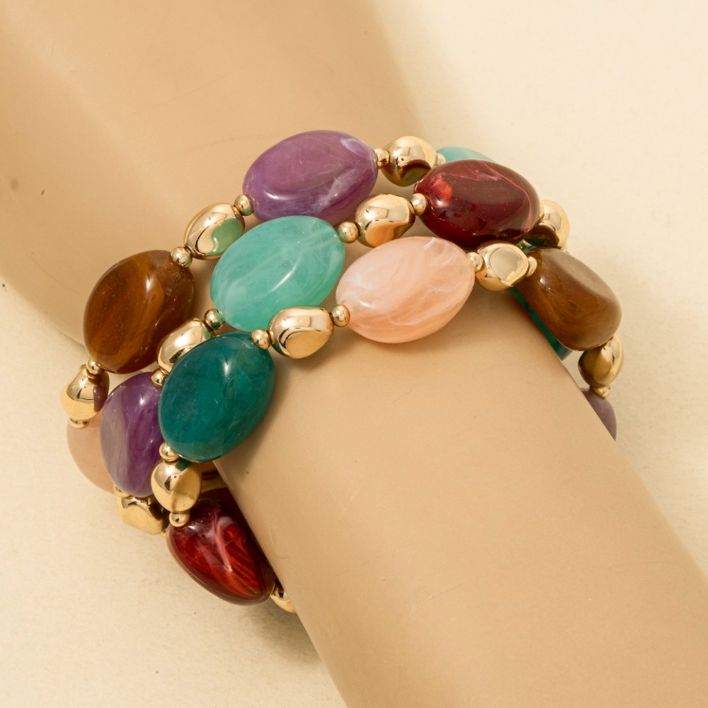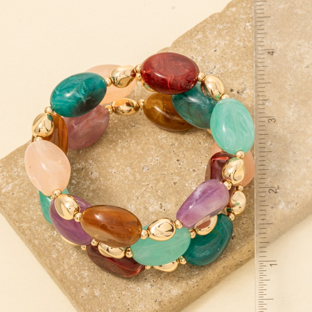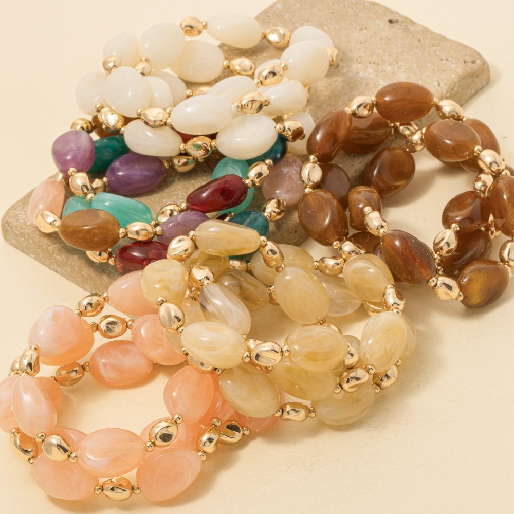 Metallic Accent Chunk Marble Resin Beads Bracelet Set