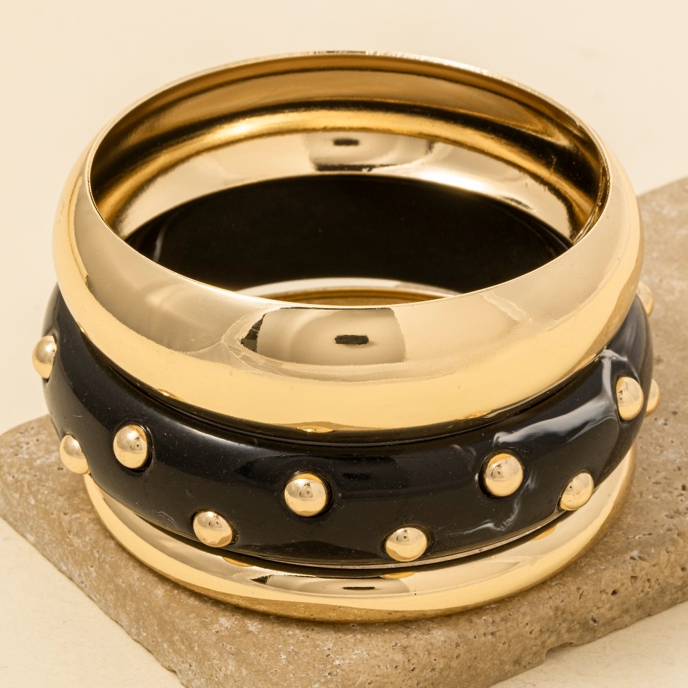 Studded Marble Resin And Metallic Bracelet Set