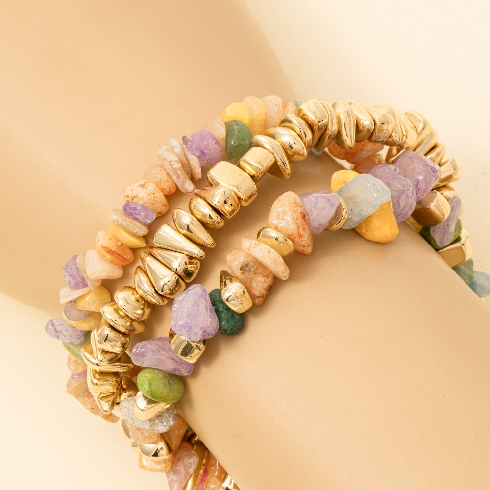 Irregular Marble Resin And Metallic Beaded Bracelet Set