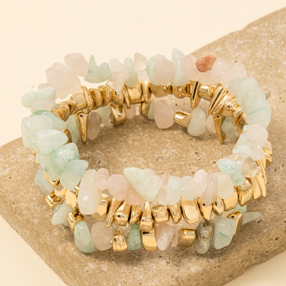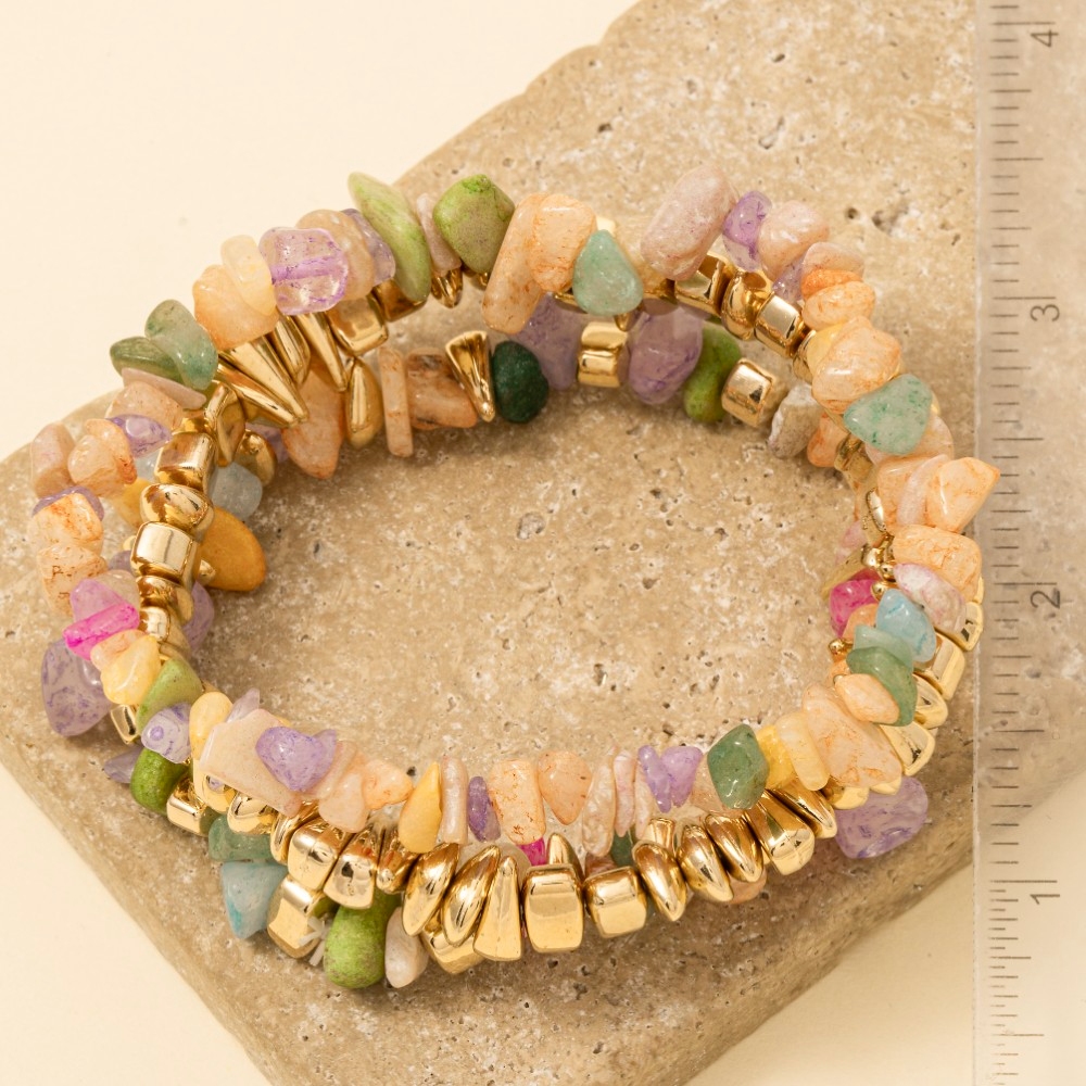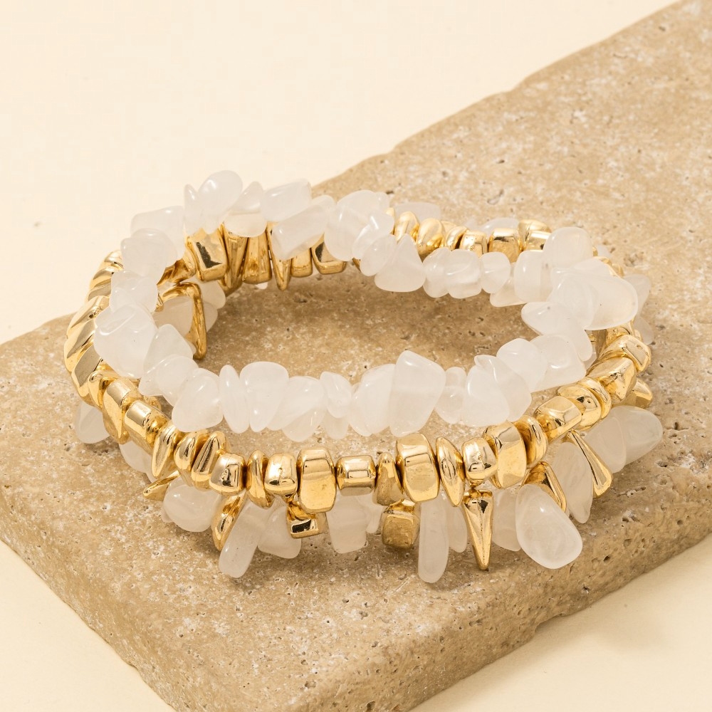 Metallic Accent Chunk Marble Resin Beads Bracelet Set