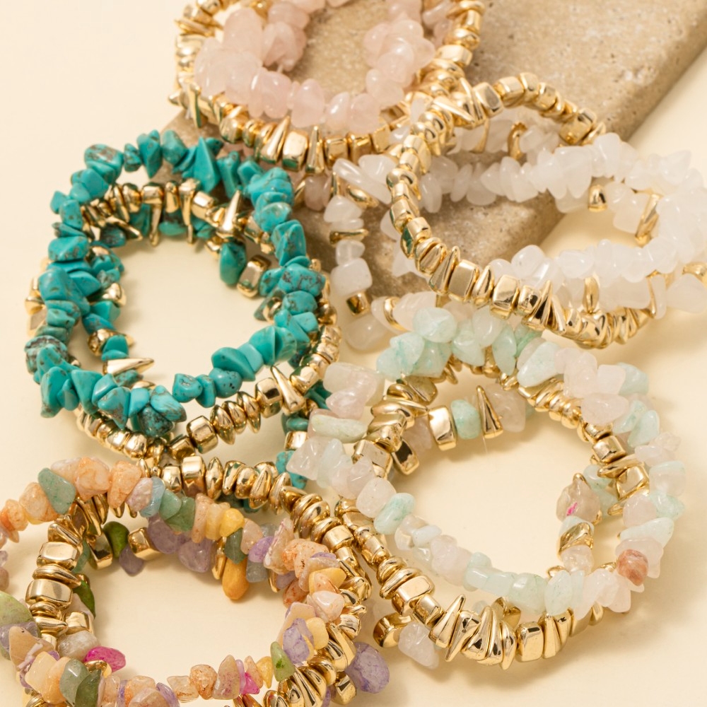 • Unleash your inner fashionista, this bracelet highlights a special resin stone and metallic chip shapes beaded set design. Transform your outfit from ordinary to extraordinary with the touch of elegance provided by this versatile bracelet. Available in GDMIN, GDMLT1, GDPNK, GDTQS, GDWHT. This item is sold in packs of 1.