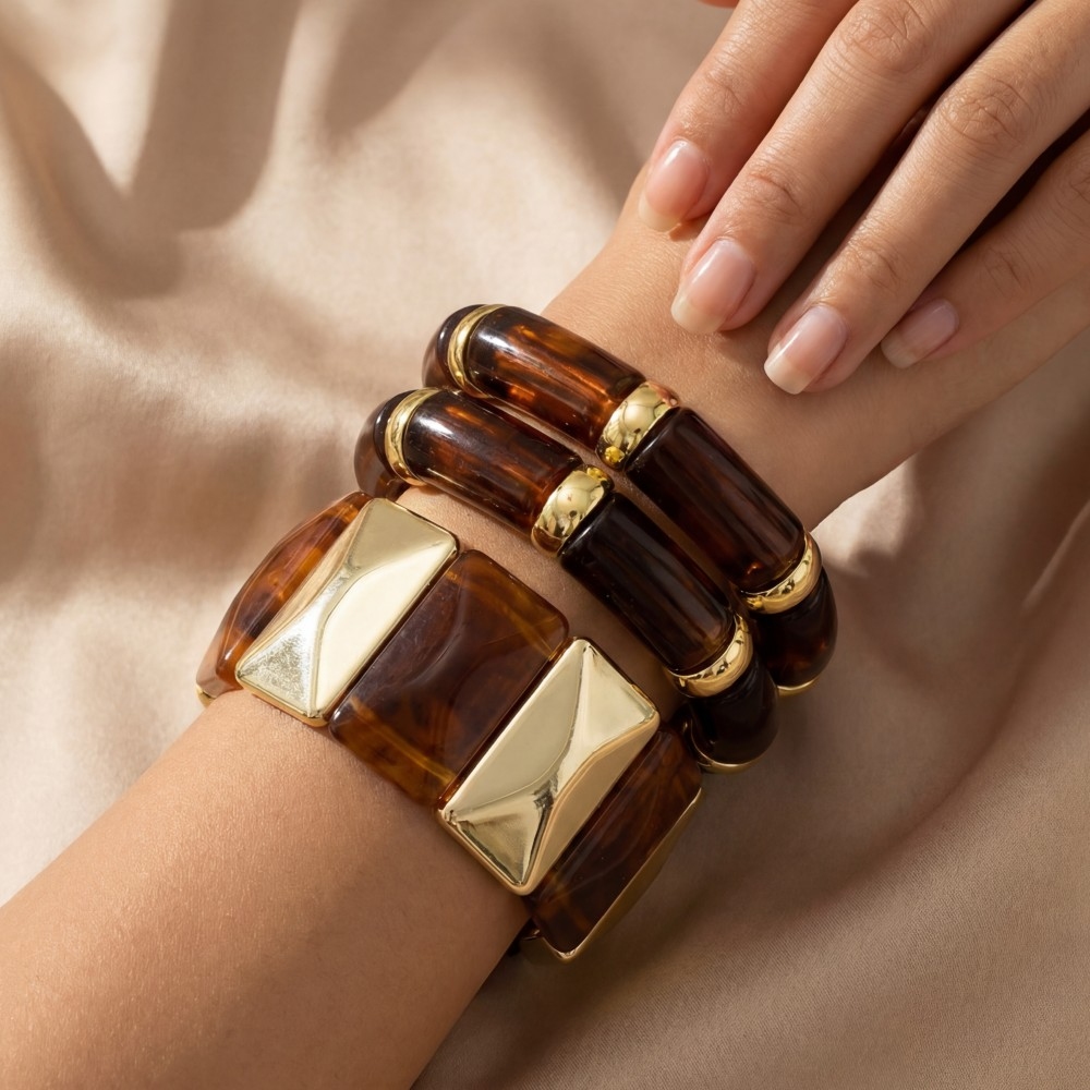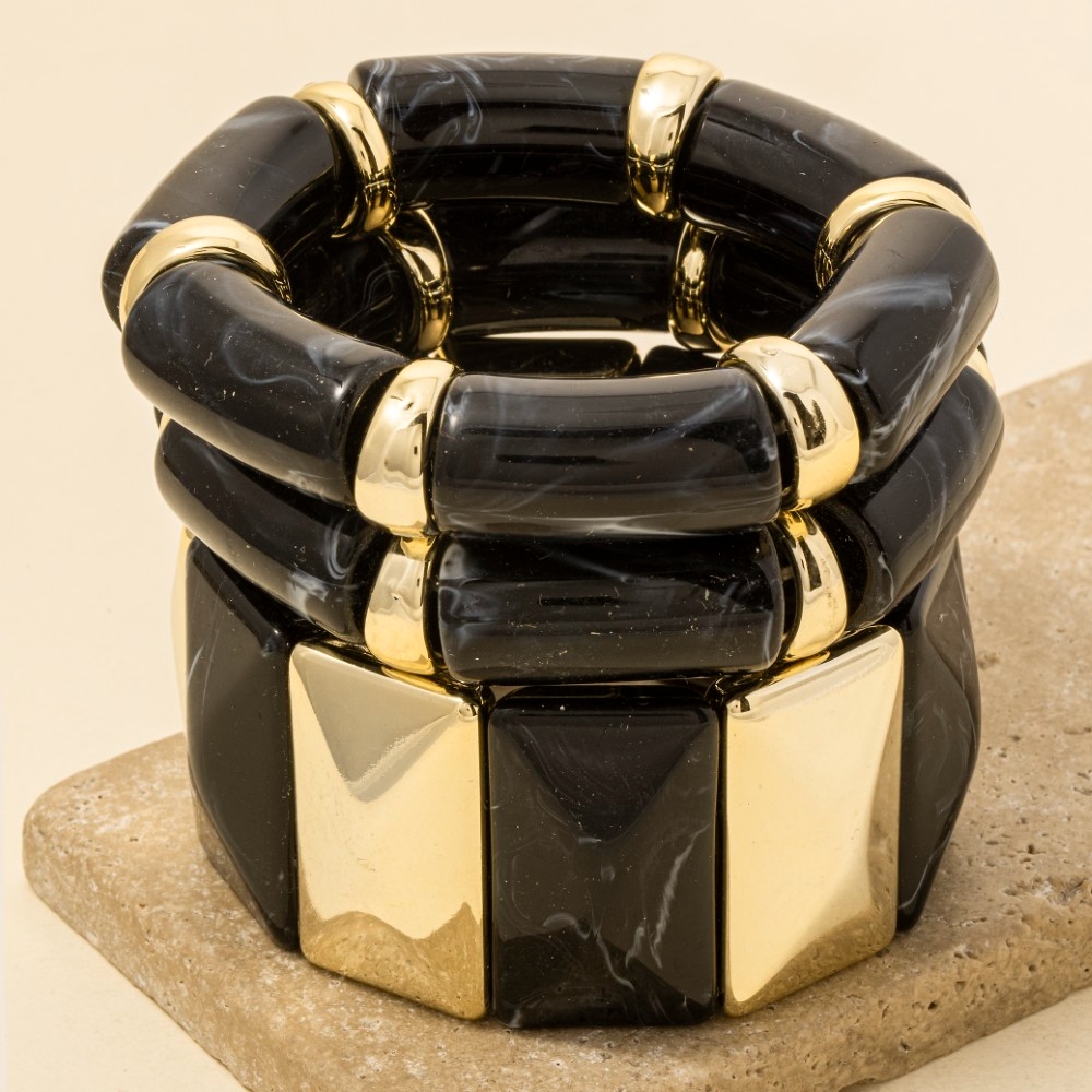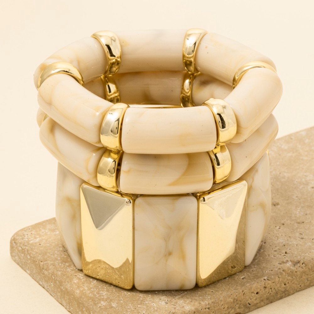 Irregular Marble Resin And Metallic Beaded Bracelet Set