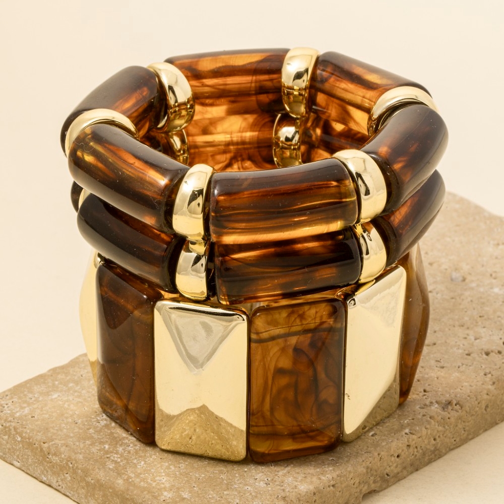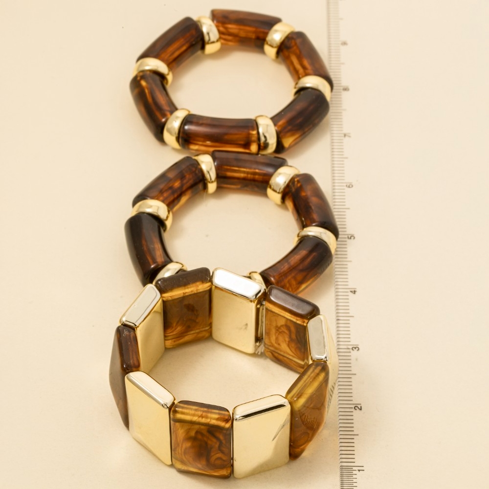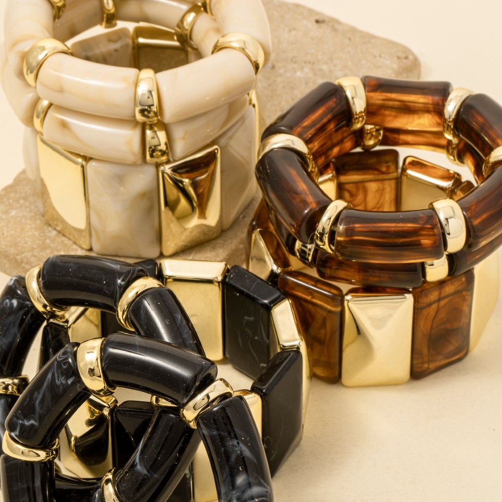 • A timeless piece that you'll wear for years to come, this bracelet possesses a fine chunky marble resin and metallic beads elastic set design. Elevate your outfit with this stylish bracelet that's perfect for any occasion. Available in BK, BR, IV. This item is sold in packs of 12.
