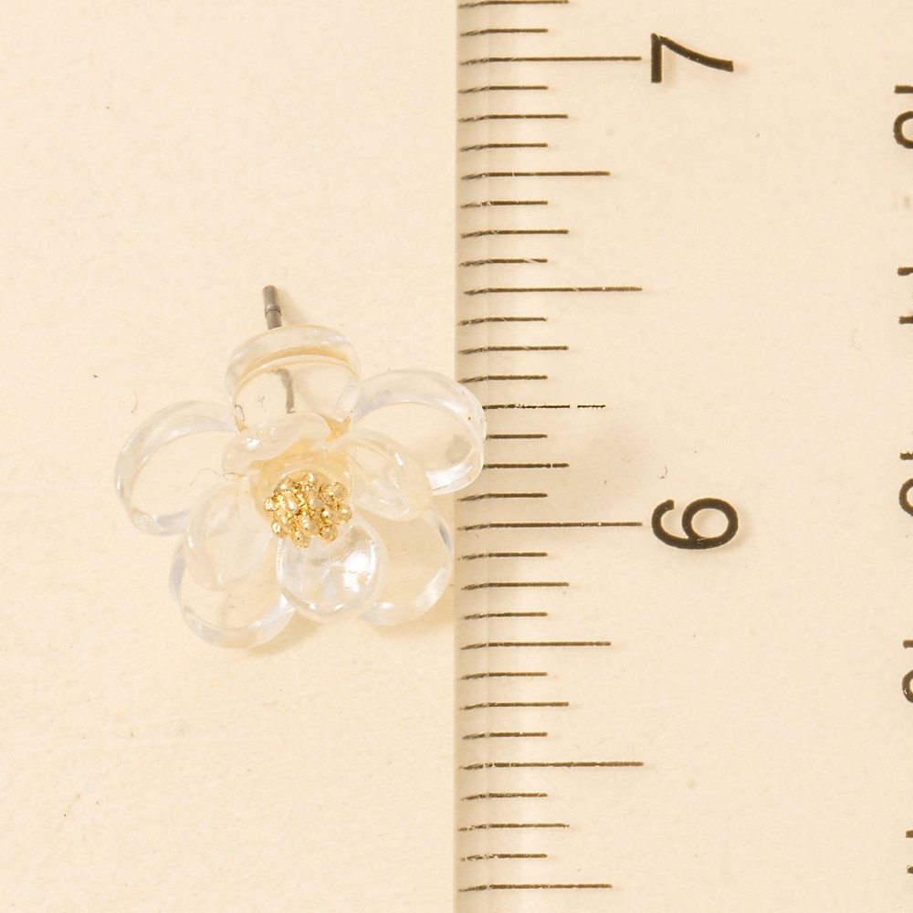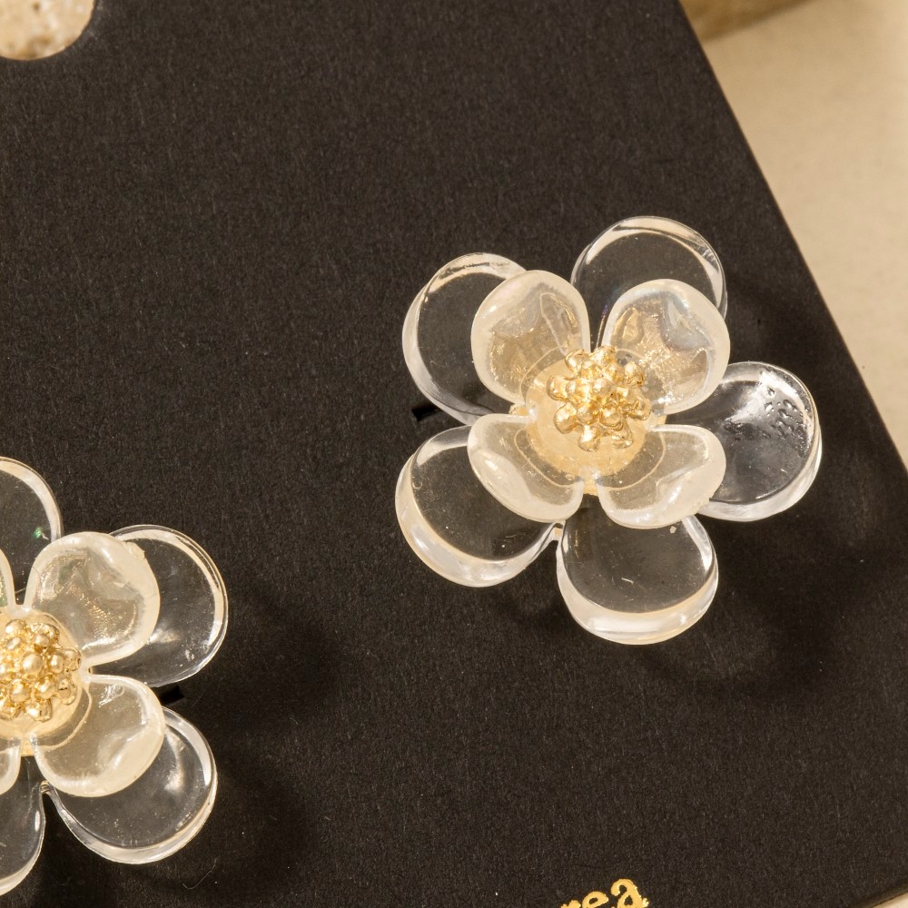 • This piece is designed to be both stylish and functional, this pair of stud earrings reveals an intricate clear resin flower design. This pair of stud earrings is ideal for both casual and formal events, adding a touch of sophistication to any outfit. This item is sold in packs of 1.
