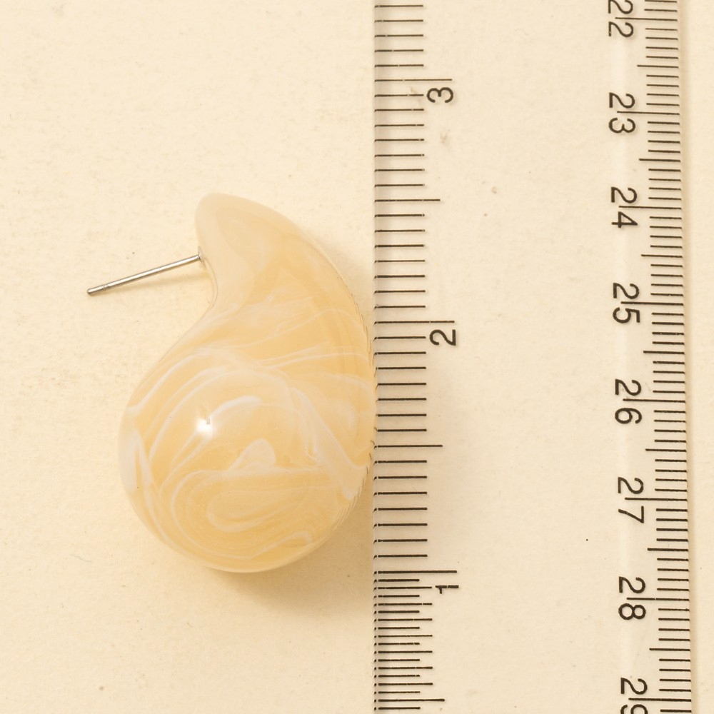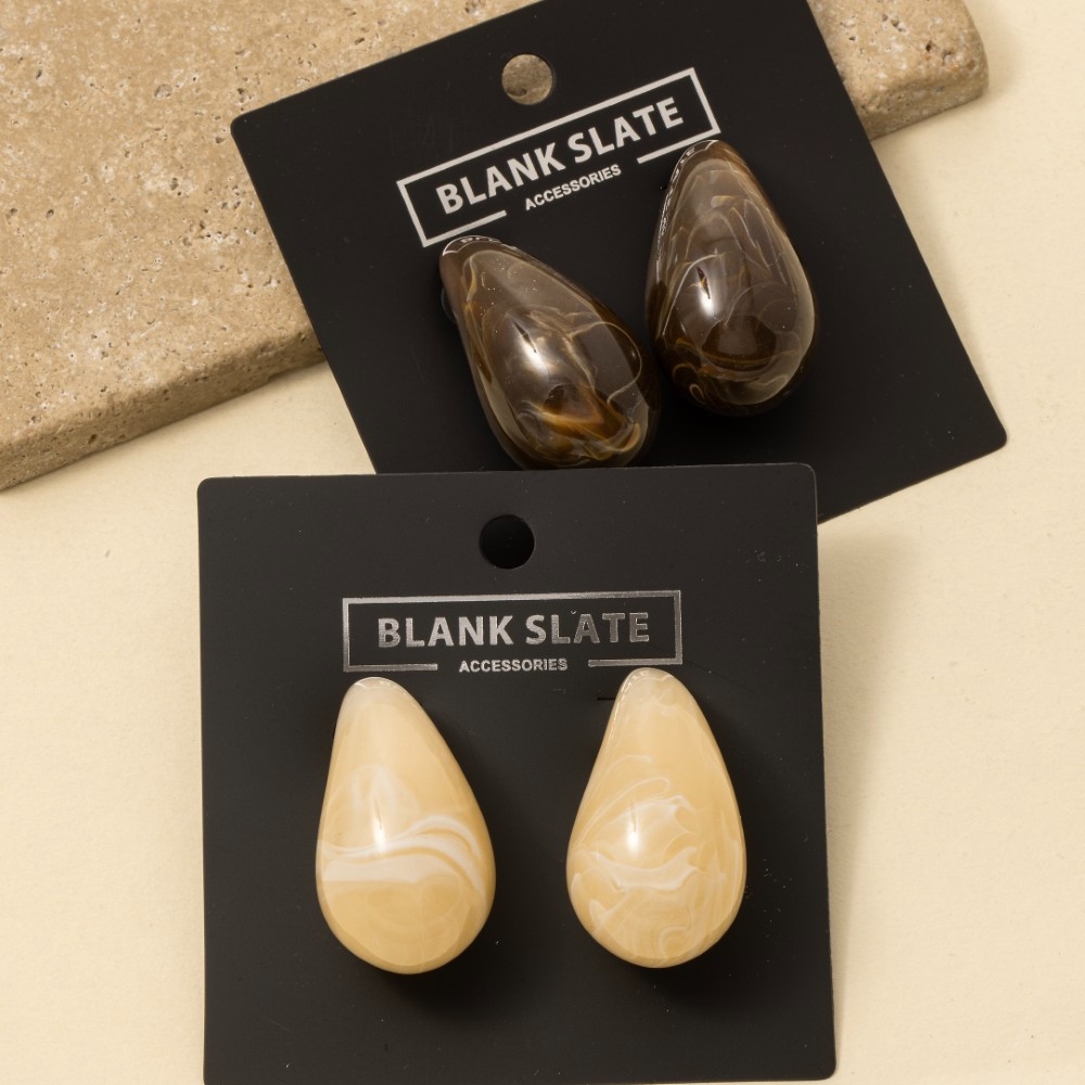 A bold and daring choice, perfect for those who want to stand out from the crowd, this pair of drop earrings features an exceptional large marble resin teardrop earrings design. Discover a new level of fashion versatility as this pair of drop earrings effortlessly elevates the allure of your attire. Available in BR, IV. This item is sold in packs of 1.