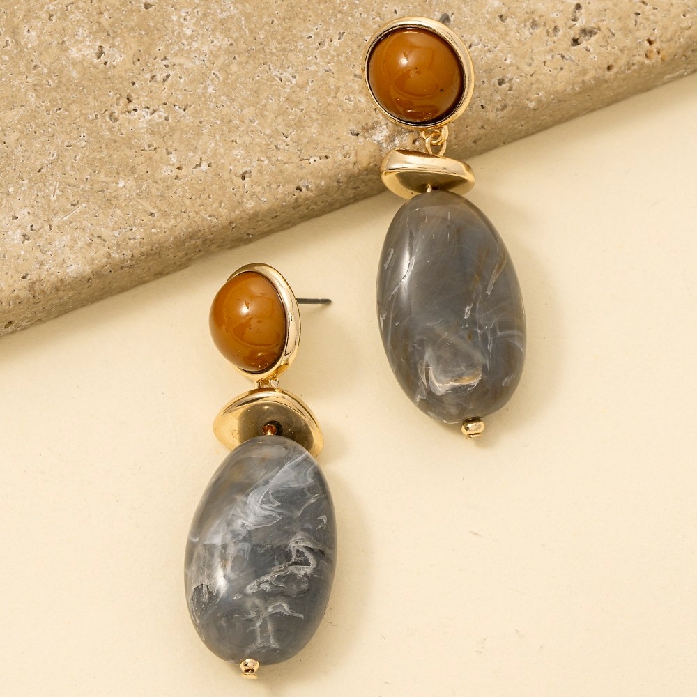 Marble Resin And Metallic Discs Tiered Dangle Earrings