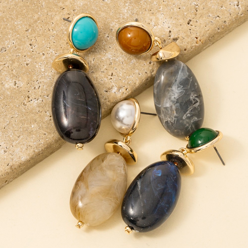 • Effortlessly elevate your outfit, this pair of dangle earrings possesses a fine large oval marble resin bead design. Elevate your everyday style with this versatile pair of dangle earrings, a simple yet impactful addition to your fashion repertoire. Available in BR, GN, PR, TQ. This item is sold in packs of 1.
