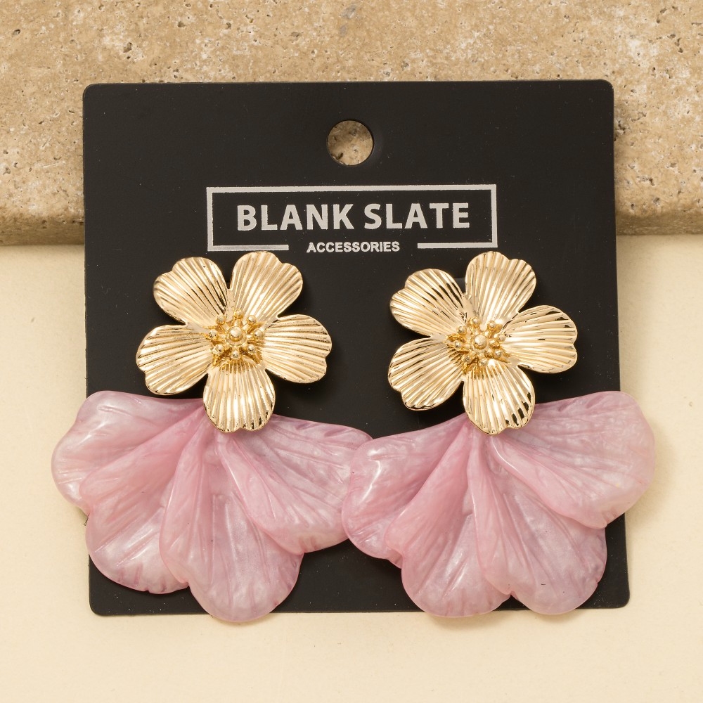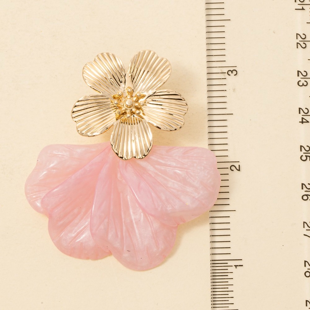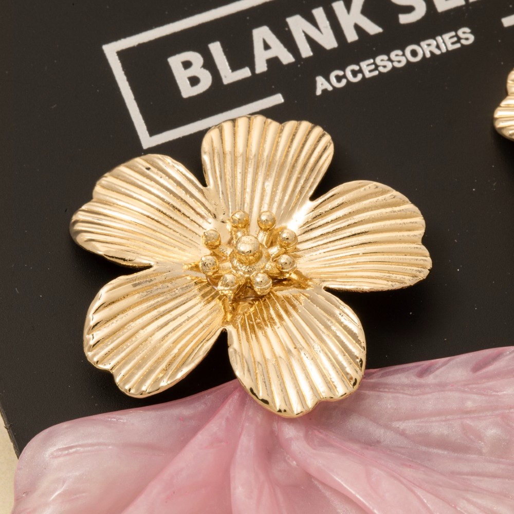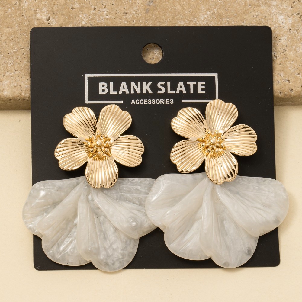 • A unique and stylish piece that sets you apart, this pair of dangle earrings features a distinct metallic and marble resin flower design. The perfect pair of dangle earrings for completing any outfit, whether you're dressing up or keeping it casual. Available in IV, PK. This item is sold in packs of 1.