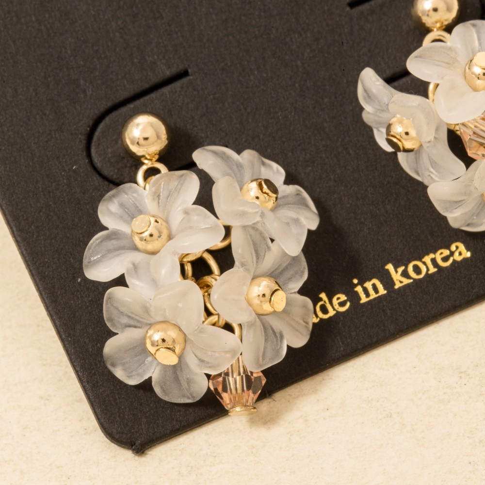 A modern classic, this pair of drop earrings features an exceptional multi resin flower clutter design. The perfect way to elevate any outfit, this pair of drop earrings adds a touch of elegance and style. This item is sold in packs of 1.