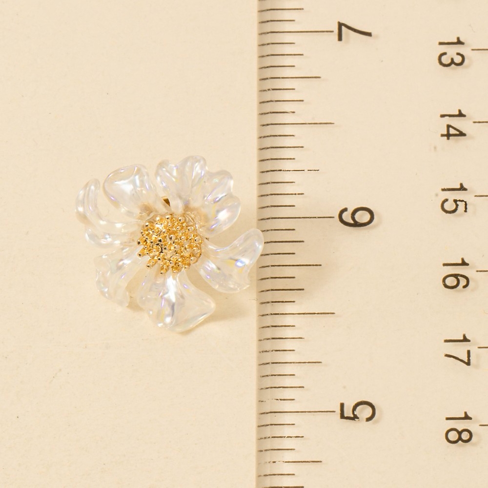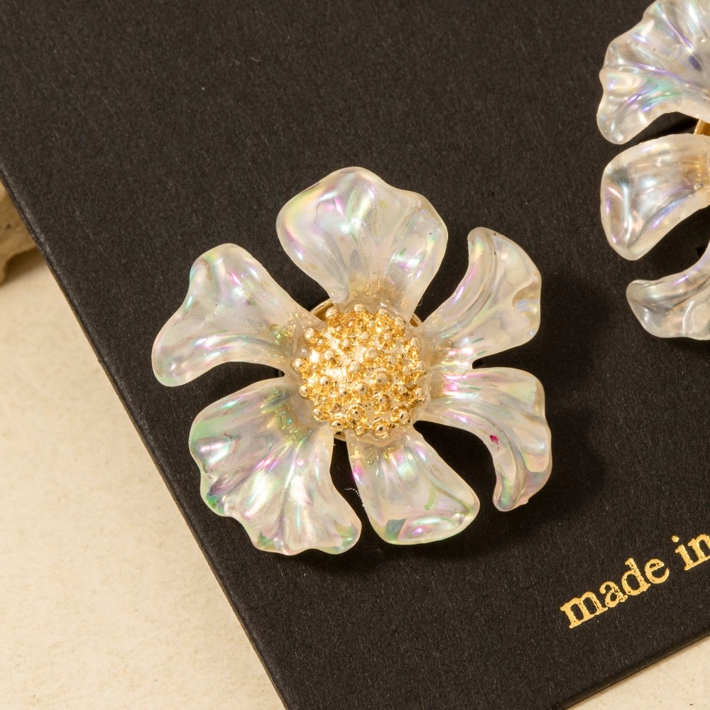 • Elevate any look, this pair of stud earrings boasts a magnificent resin petal flower design. This item is ideal for those who want to add some personality to their outfits without being too bold. This item is sold in packs of 1.