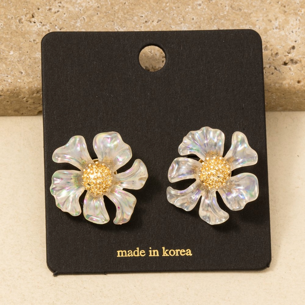 • This pair of stud earrings is featured in our Floral and Resin Collection.