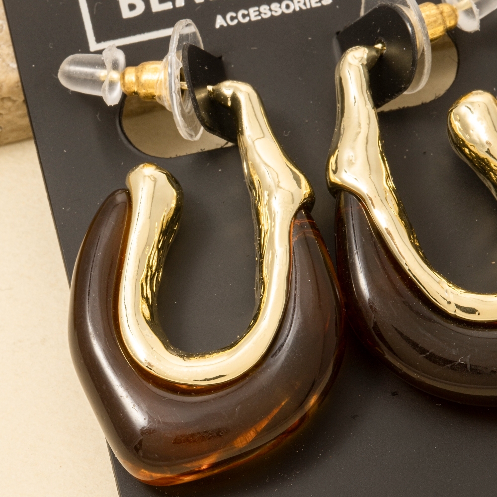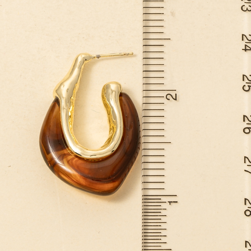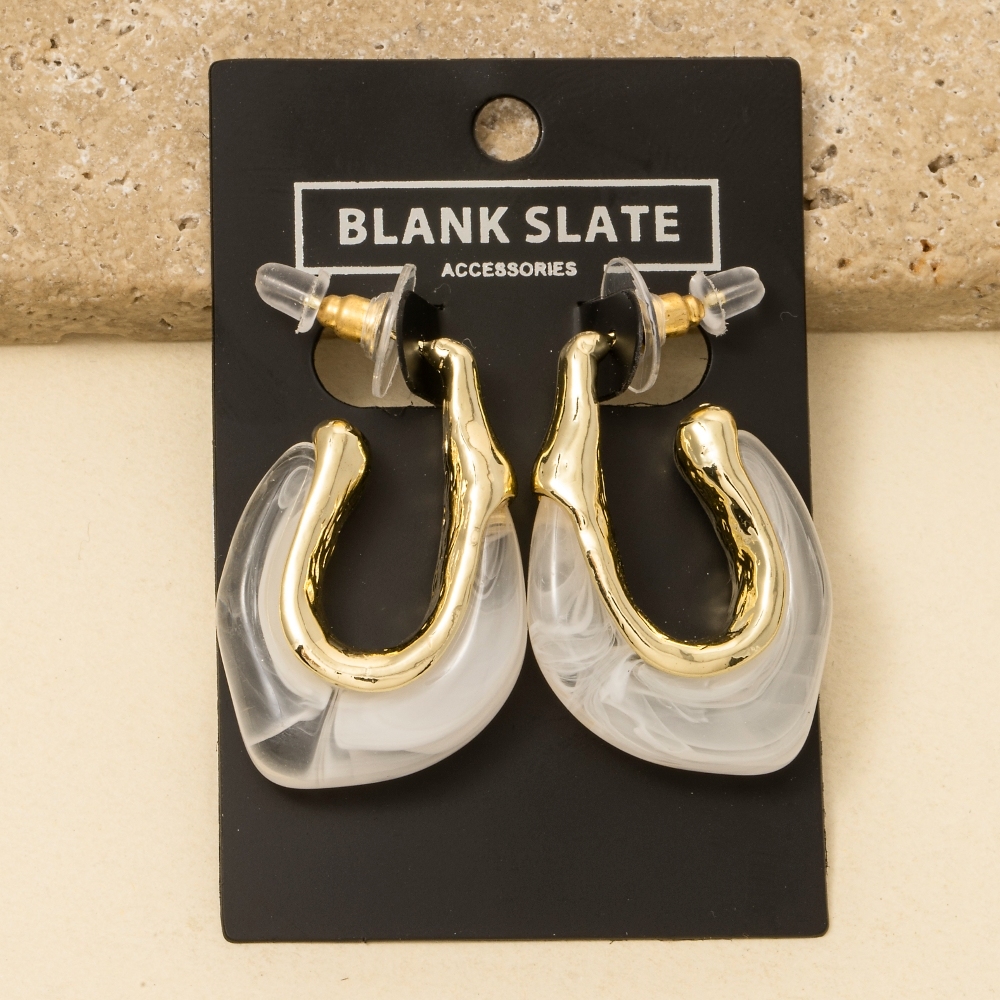 The perfect way to add some edge to your look, this pair of hoop earrings possesses a fine warped marble resin and metallic u shape design. Redefine your fashion identity with this versatile pair of hoop earrings, a timeless piece that complements any wardrobe. Available in GIV. This item is sold in packs of 1.