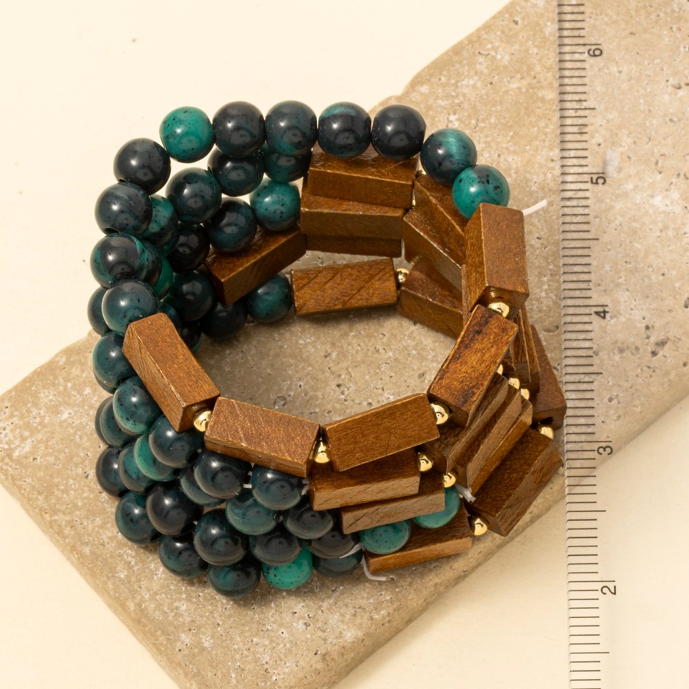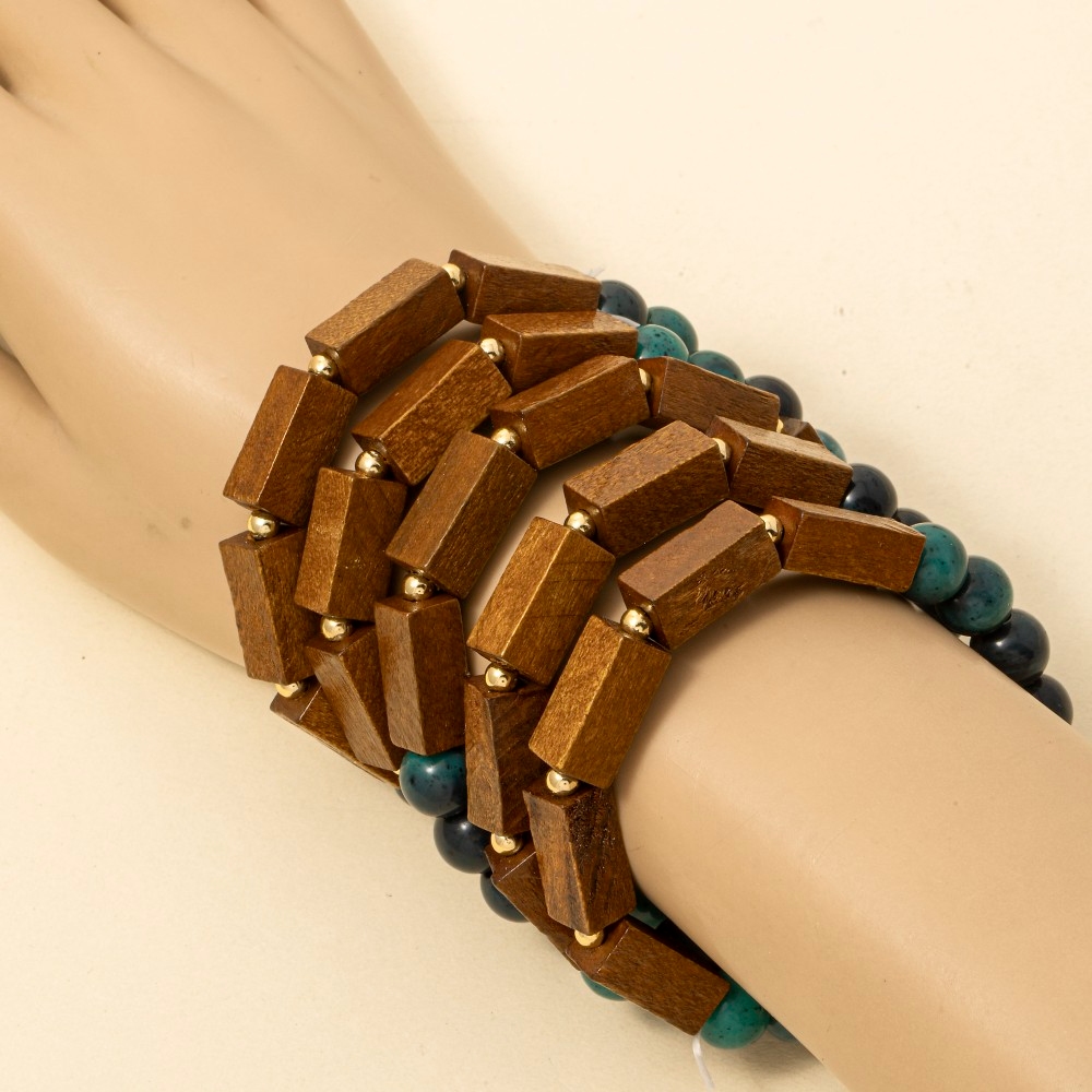 • This bracelet is made with 60% Synthetic Stone 40% Wood.