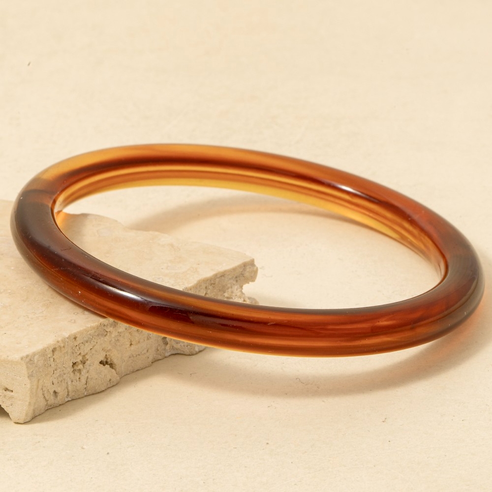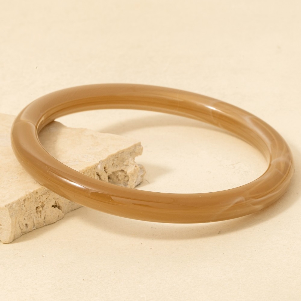 • This season's must-have bangle bracelet, this bangle bracelet exudes a refined resin tube design. Discover a new level of fashion versatility as this bangle bracelet effortlessly elevates the allure of your attire. Available in BR, CL, GN, KA. This item is sold in packs of 1.