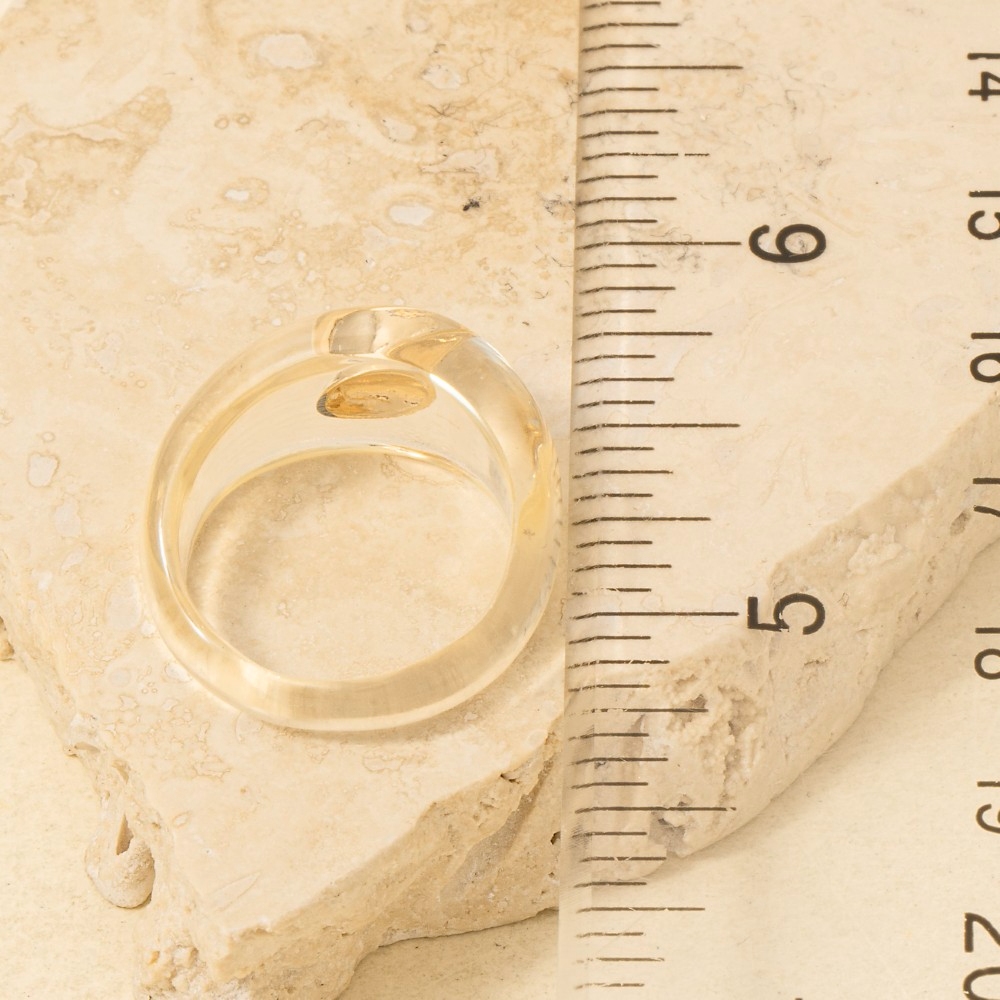 • Make a bold statement, this ring showcases a breathtaking gold ball inlay clear resin design. Elevate your outfit with this stylish ring that's perfect for any occasion. Available in G, S. This item is sold in packs of 1.