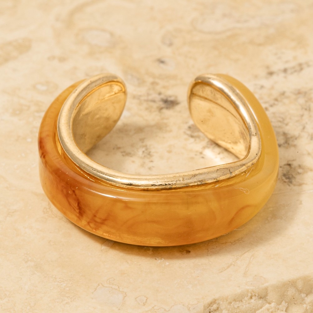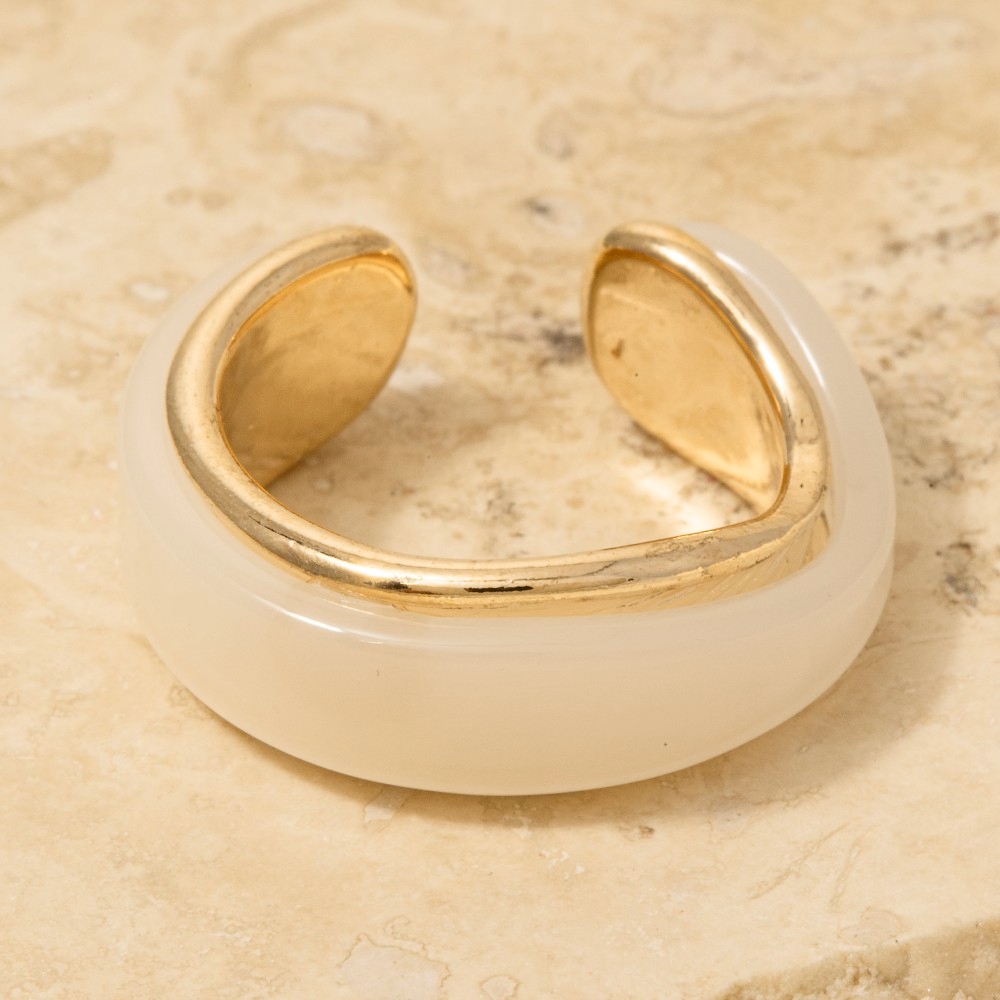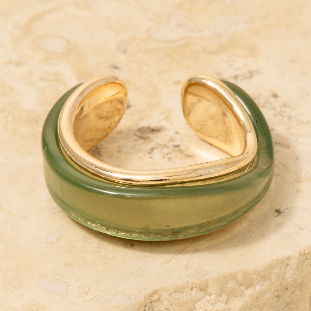 Stay on-trend and stand out from the crowd, this ring radiates a sleek resin and gold layered design. Elevate your outfit with this stylish ring that's perfect for any occasion. Available in BR, GN, IV. This item is sold in packs of 1.