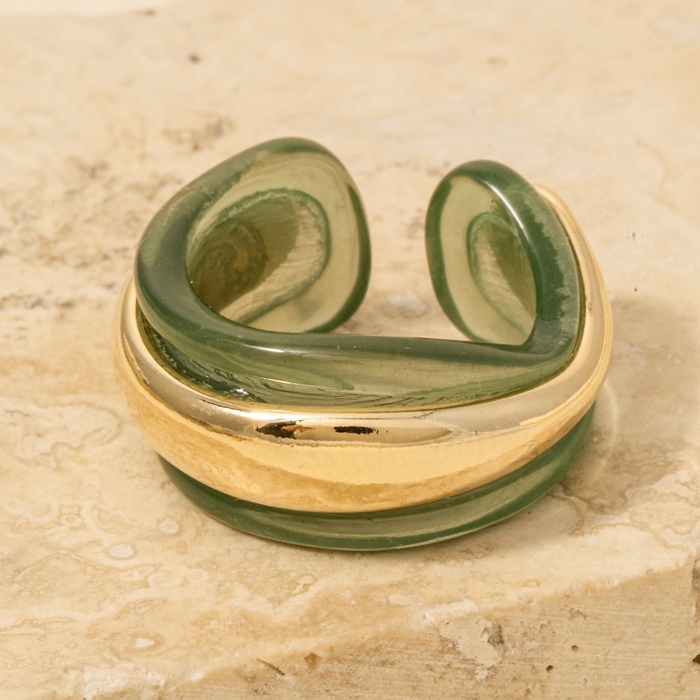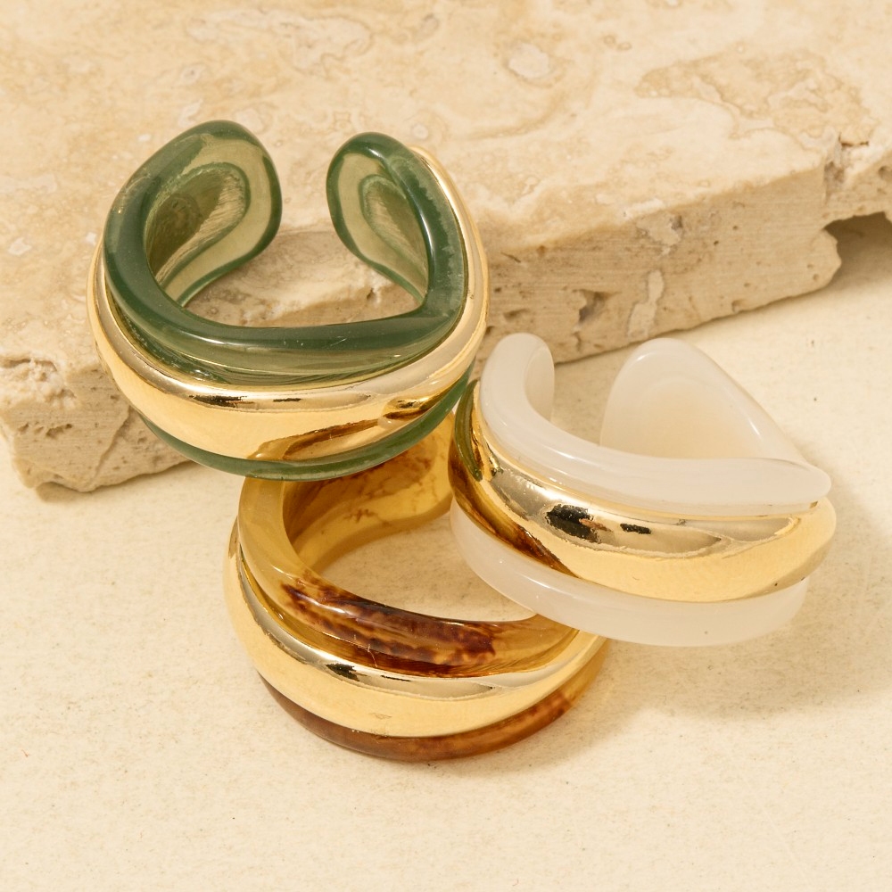 • This piece is both elegant and versatile, this ring shows off a distinctive resin and gold statement design. This ring is ideal for both casual and formal events, adding a touch of sophistication to any outfit. Available in BR, GN, IV. This item is sold in packs of 1.