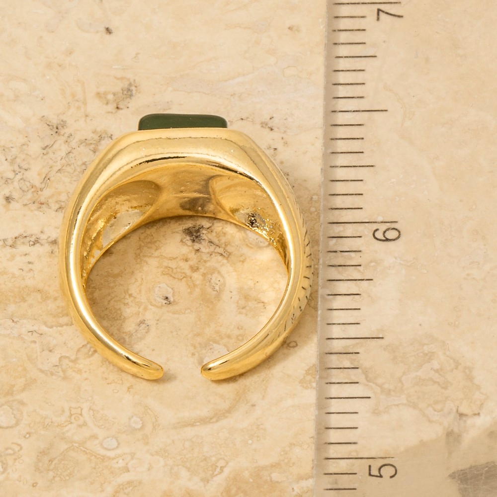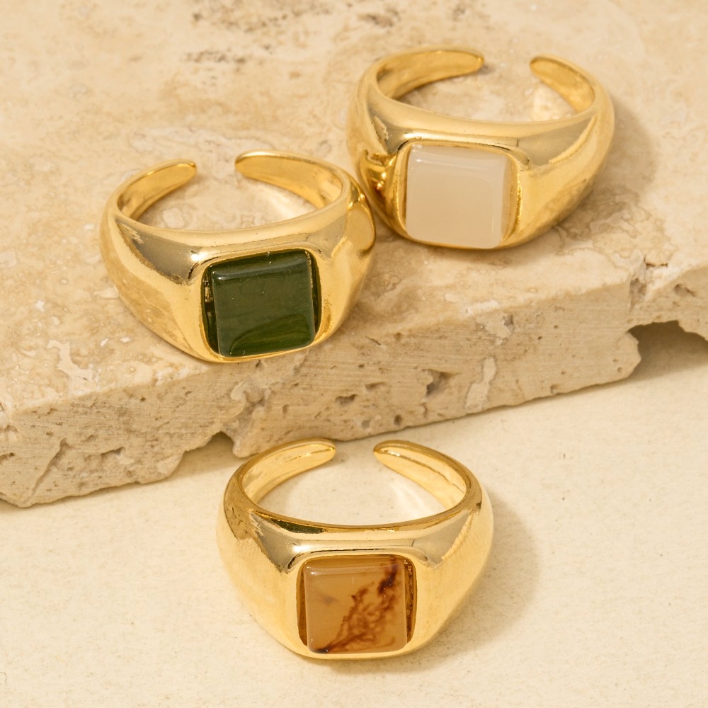 • A timeless piece that you'll wear for years to come, this ring features an exceptional square resin accent gold open band design. This ring is a great way to add some flair to your outfit without going over the top. Available in BR, GN, IV. This item is sold in packs of 1.