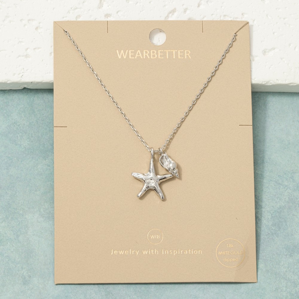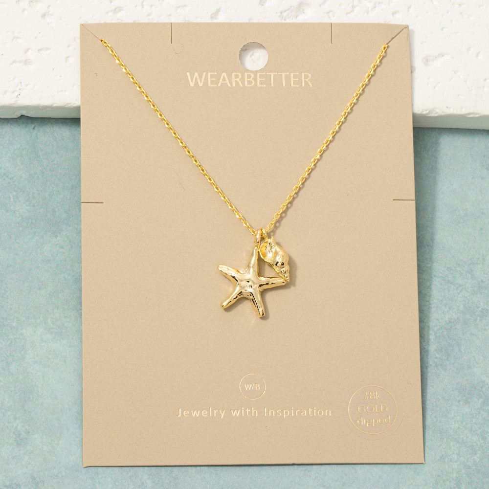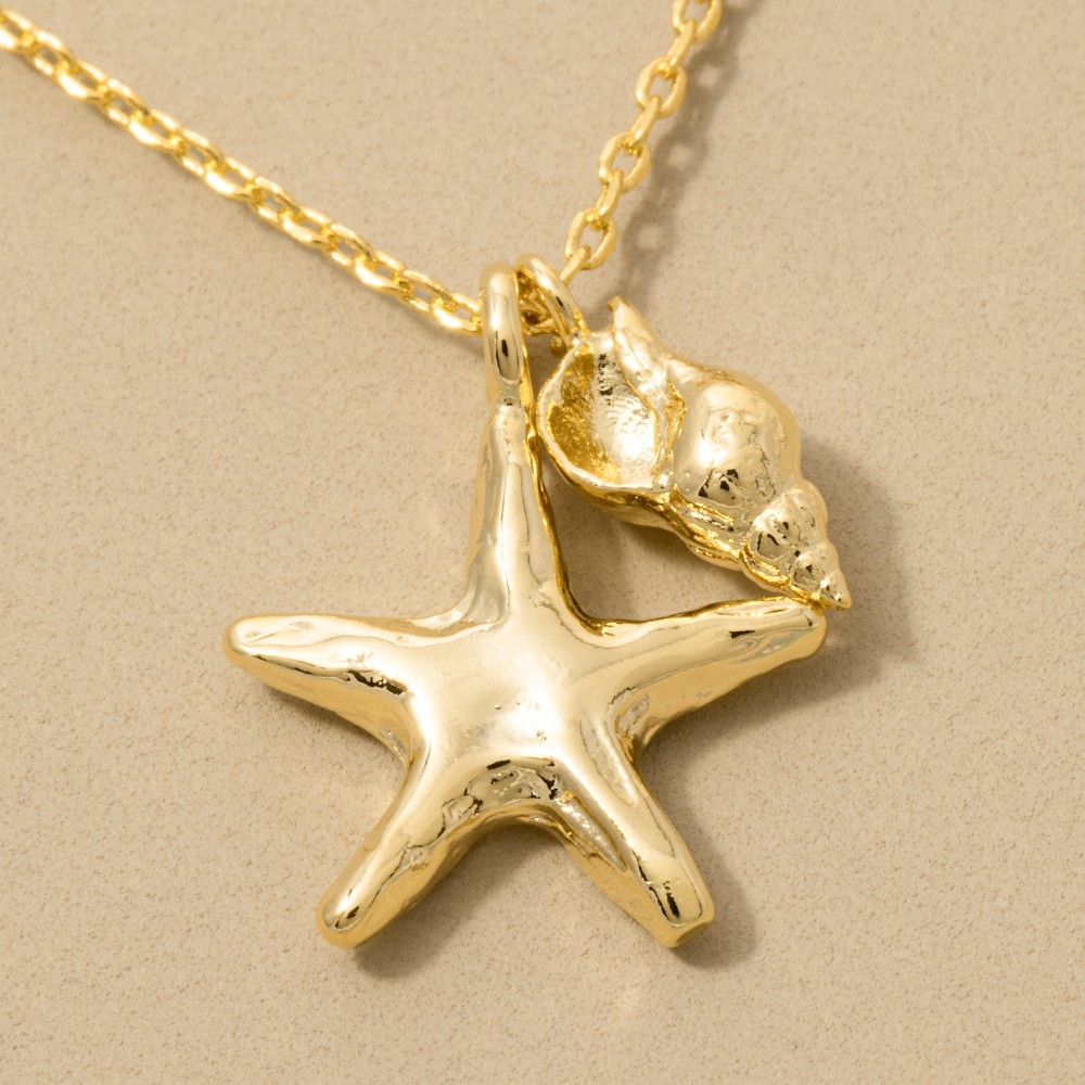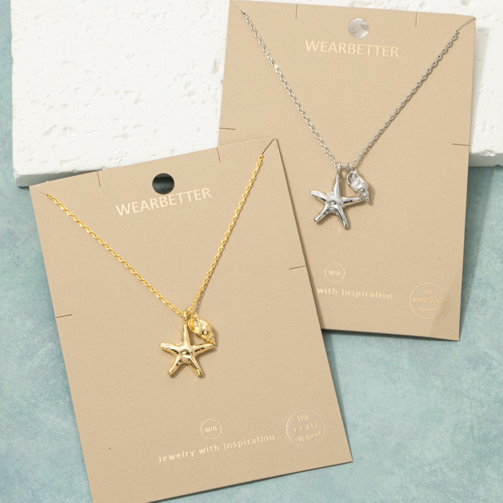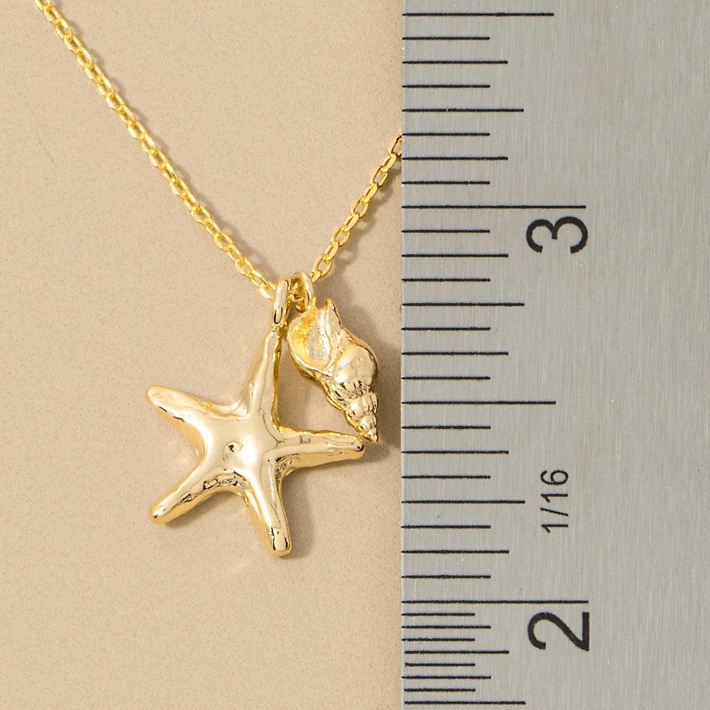 This season's hottest pendant necklace, this pendant necklace shows off a distinctive 18k gold starfish shell charm design. This item is perfect for anyone who loves to accessorize and add some personality to their outfits. Available in G, S. This item is sold in packs of 1.