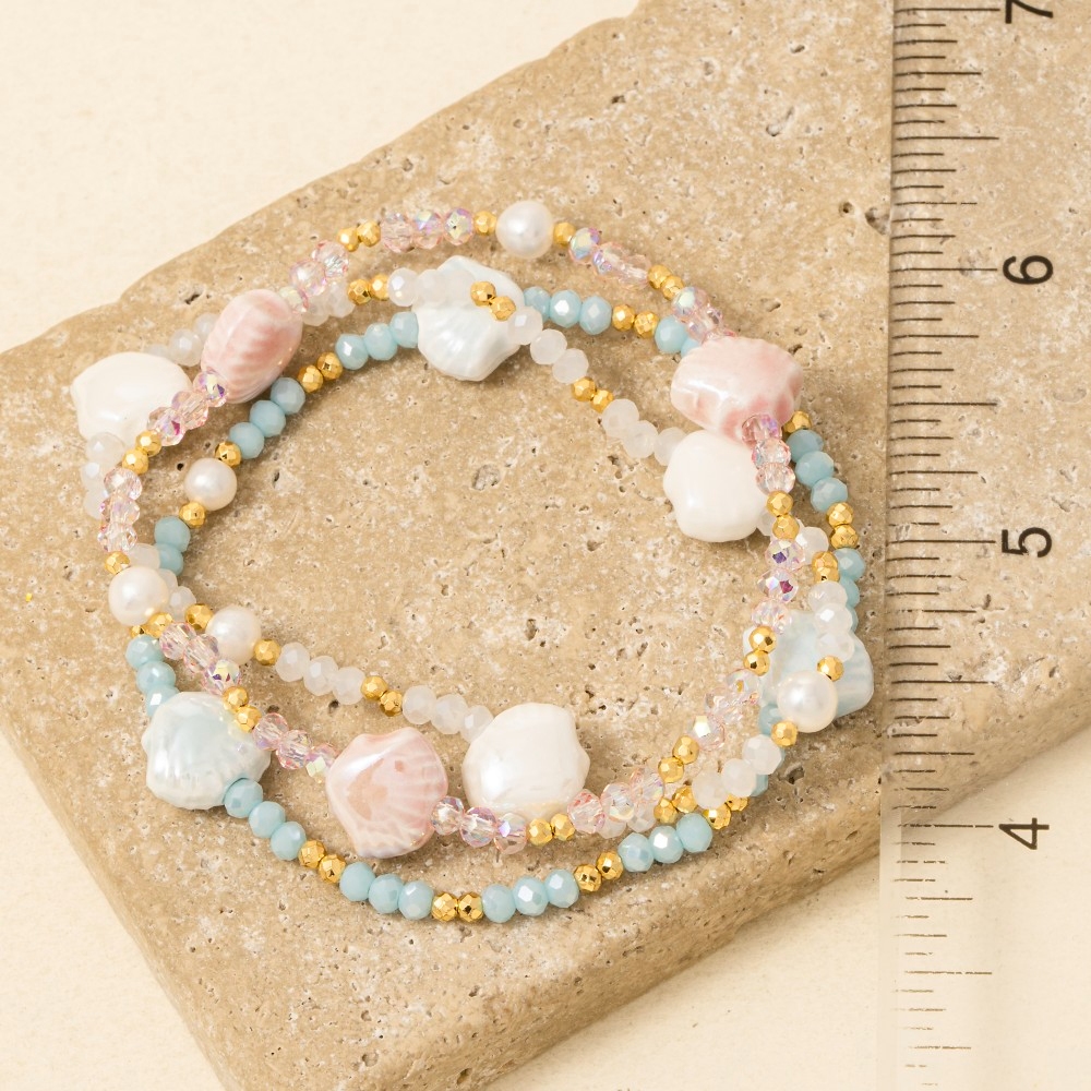 Shell Charms Faceted And Metallic Beaded Bracelet Set