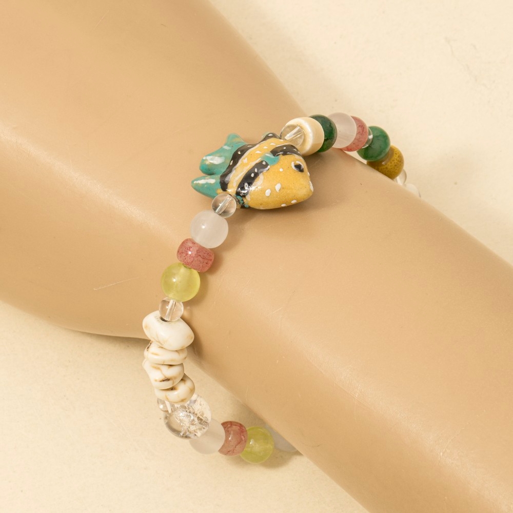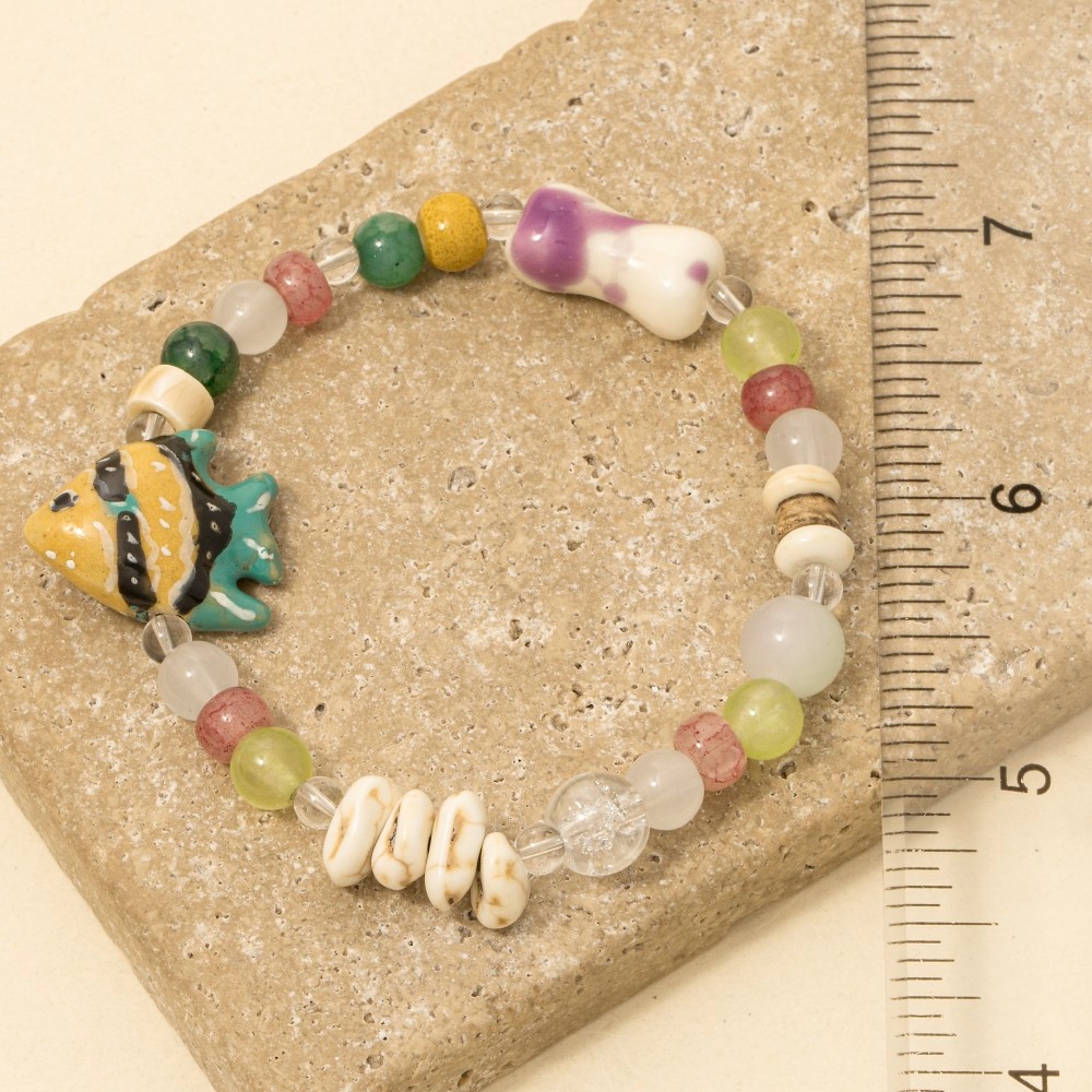 • A unique and stylish piece that sets you apart, this bracelet offers a remarkable ceramic fish gemstone beaded design. Infuse elegance into your daily wardrobe with the versatile charm of this must-have bracelet. Available in MULTI. This item is sold in packs of 1.