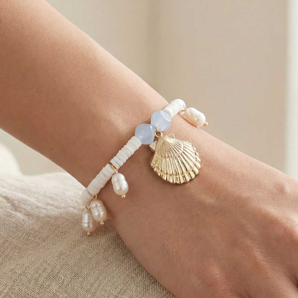 • Elevate any look, this bracelet comes with a special seashell pearl charms design. Elevate your personal style effortlessly with this versatile bracelet, an essential component for a refined wardrobe. Available in GCM. This item is sold in packs of 1.
