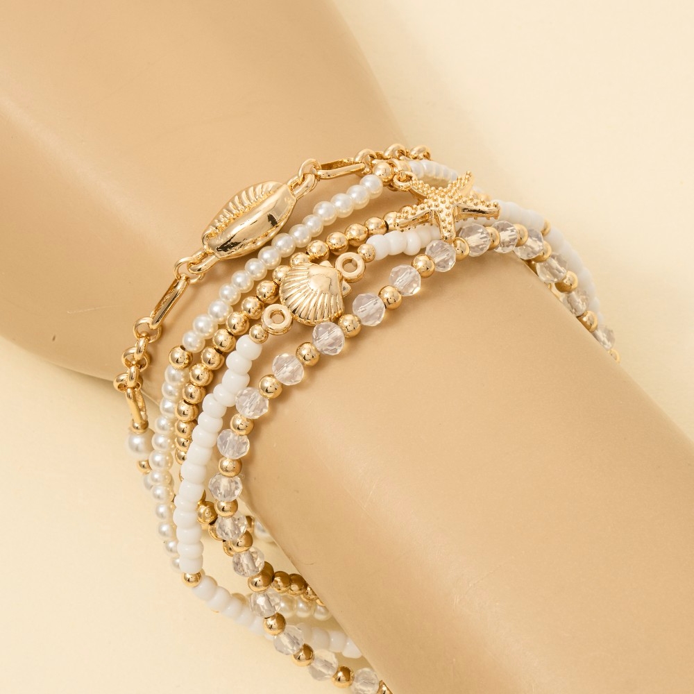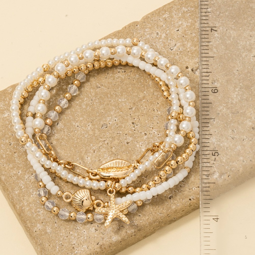 Add a touch of luxury to any outfit, this bracelet possesses a fine starfish and cowrie shell mixed pearl beaded design. This item is ideal for those who want to add some personality to their wardrobe without being too bold. Available in GD. This item is sold in packs of 1.