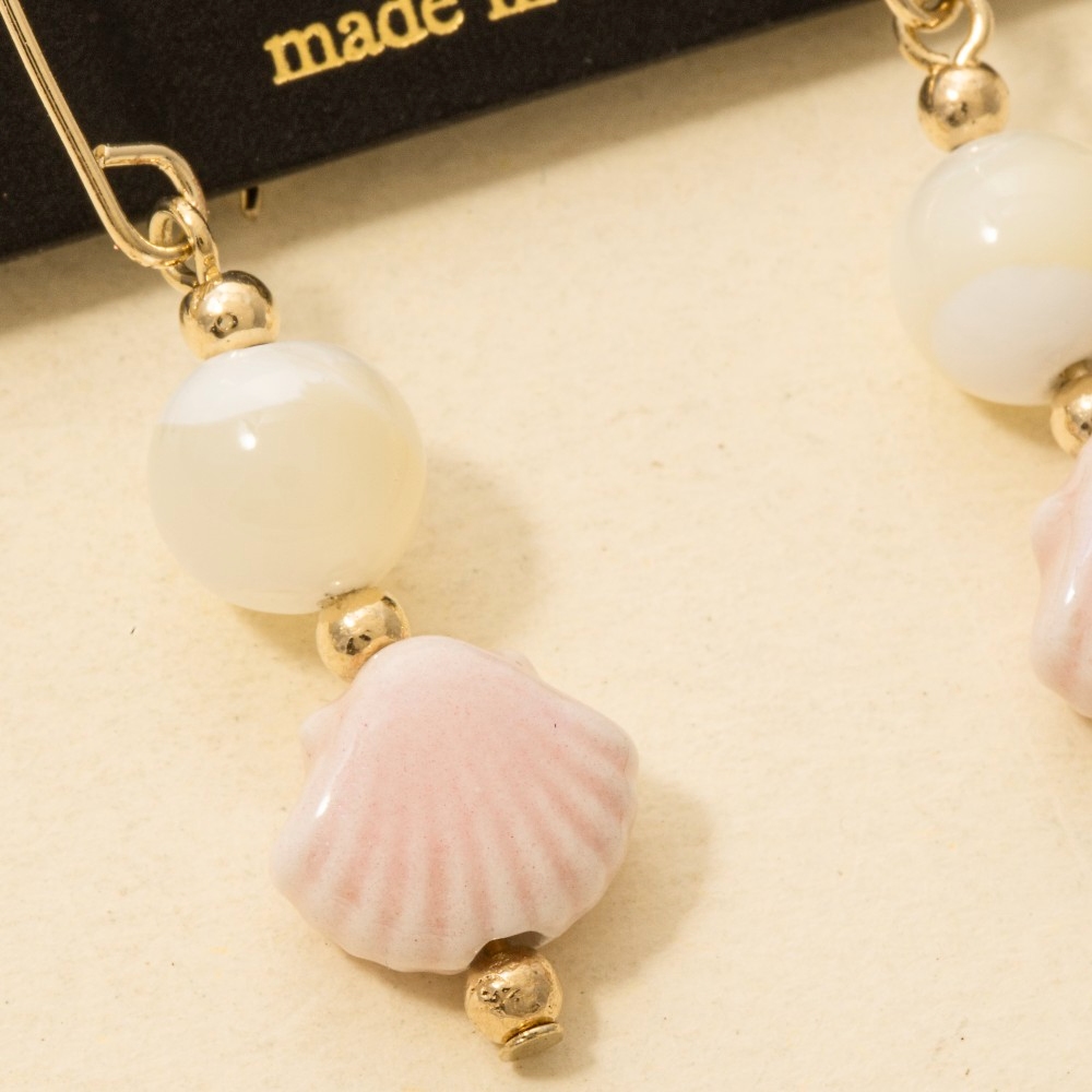 This piece is perfect for those who want to showcase their unique style, this pair of drop earrings showcases a breathtaking ceramic seashell design. This pair of drop earrings is the perfect way to add a touch of elegance to any outfit. Available in NO COLOR. This item is sold in packs of 1.