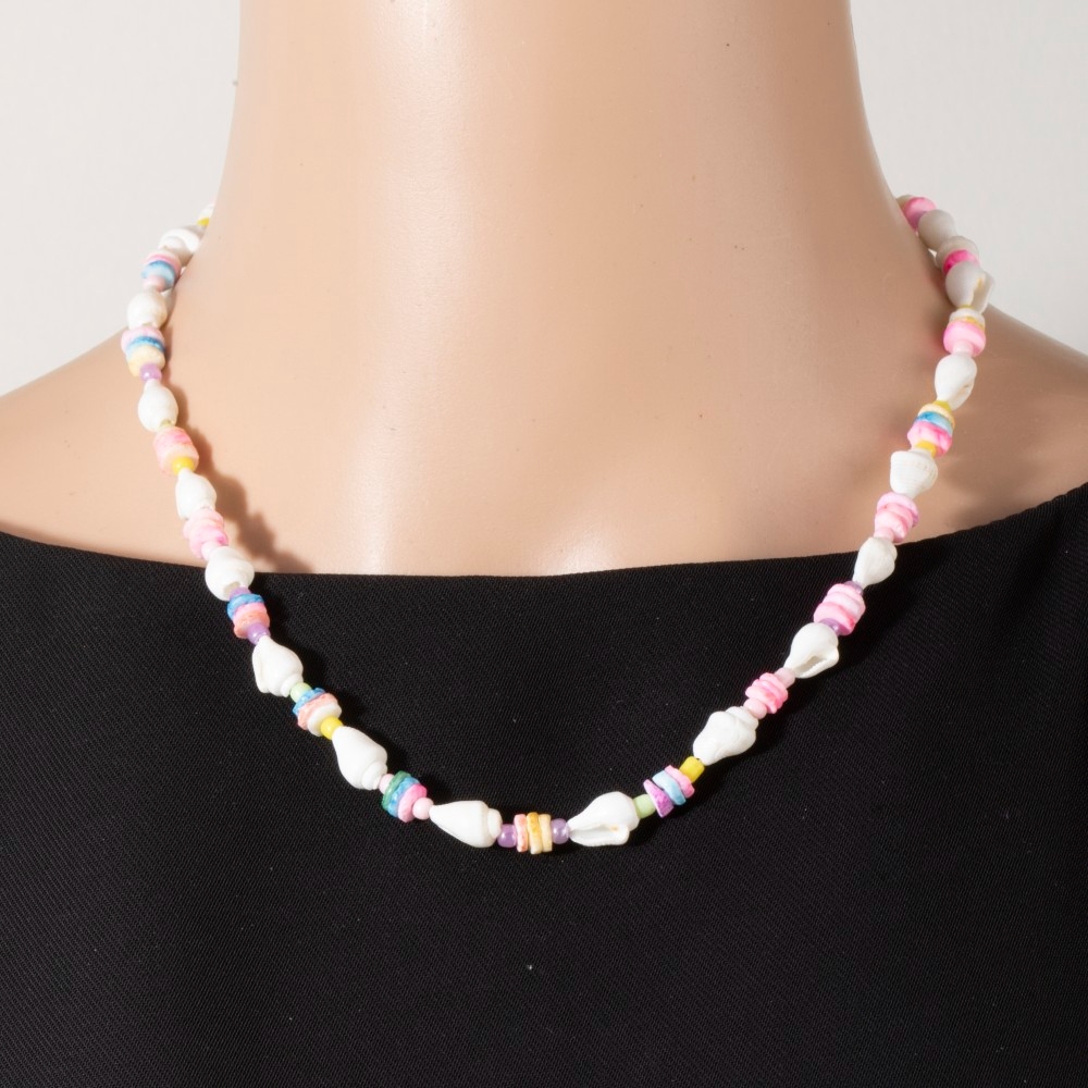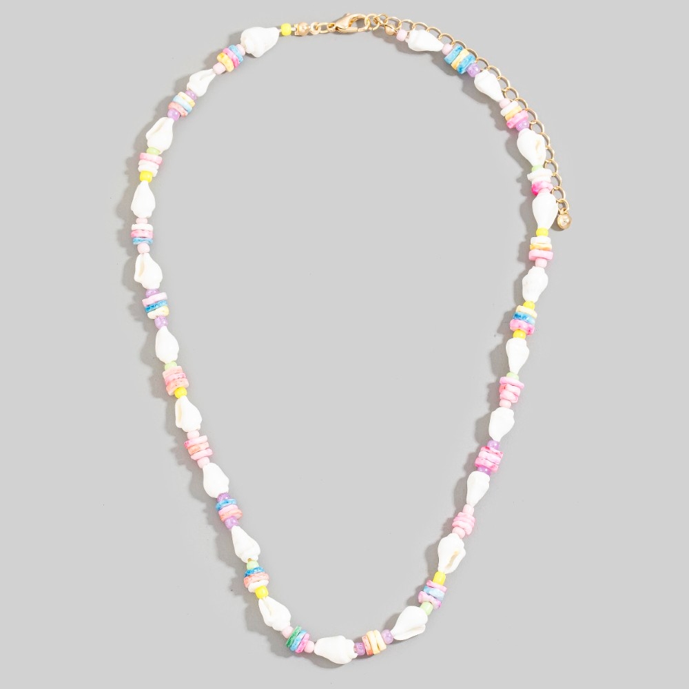 • This season's must-have necklace, this necklace incorporates a remarkable colorful disc and shell beaded design. This item is the perfect way to add some texture and interest to any outfit. Available in GDMT. This item is sold in packs of 1.