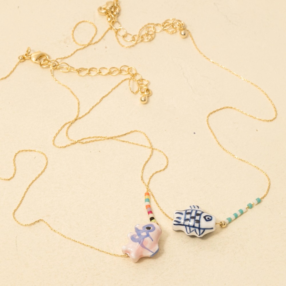 A timeless piece that will never go out of style, this necklace showcases a breathtaking dainty chain ceramic fish pendant design. Perfect for dressing up your favorite outfit, this necklace is a must-have. Available in PK, WH. This item is sold in packs of 1.