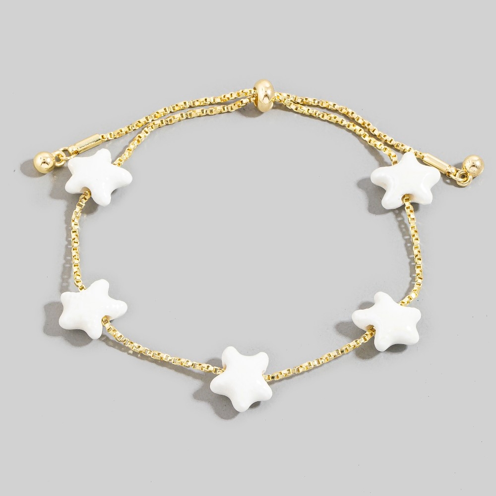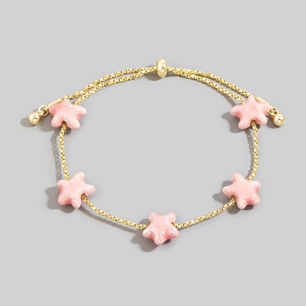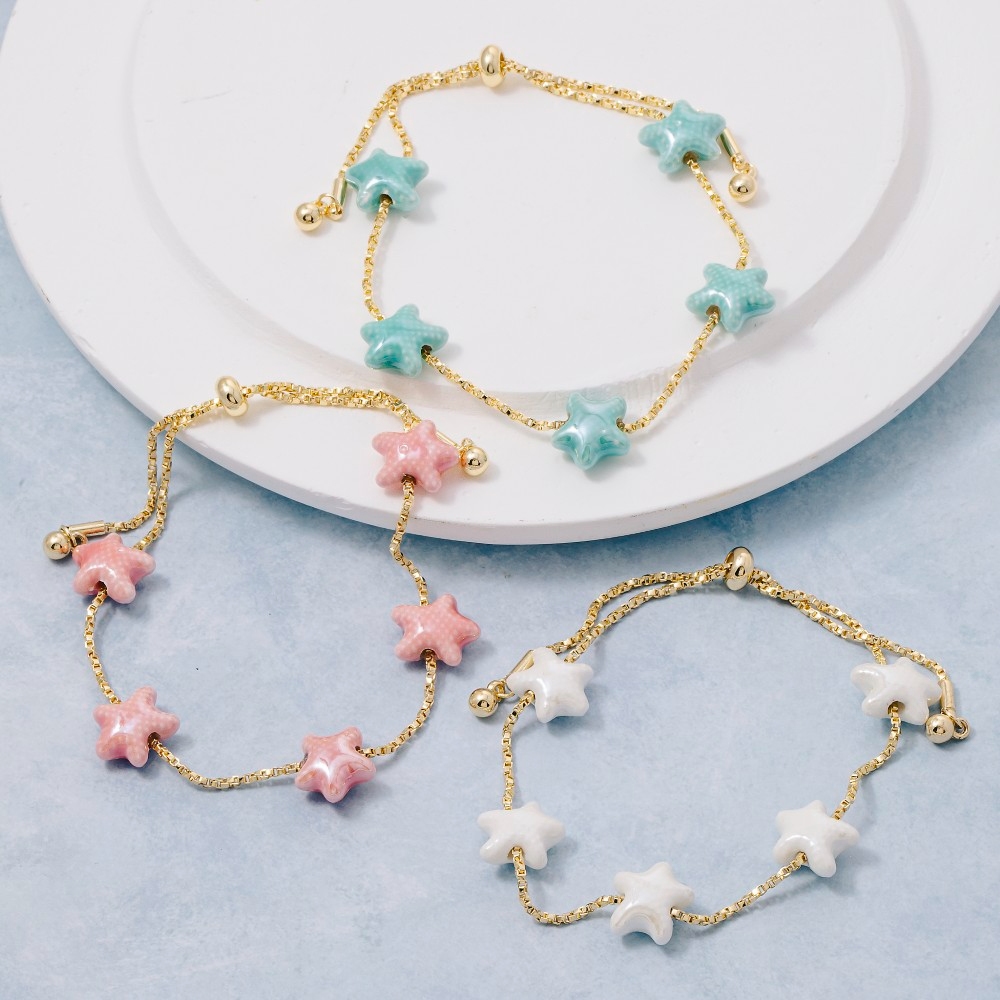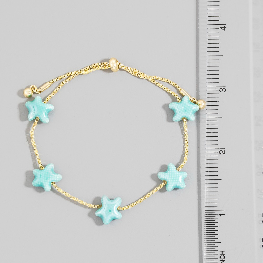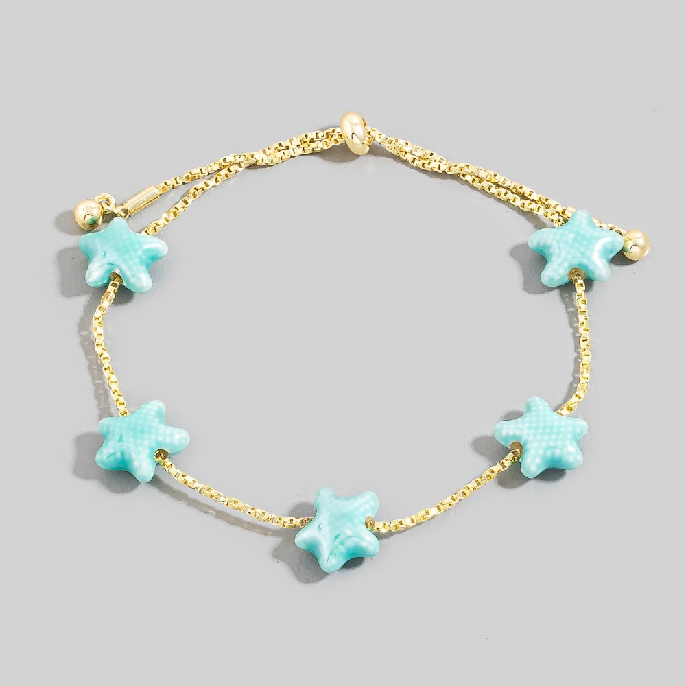 • Add some edge to your wardrobe, this chain bracelet presents a striking ceramic starfish station charms design. Perfect for adding some personality and flair to your wardrobe, this chain bracelet is a must-have. Available in PK, TQ, WT. This item is sold in packs of 1.