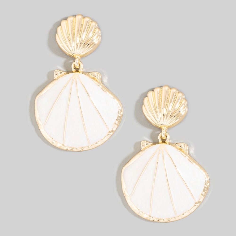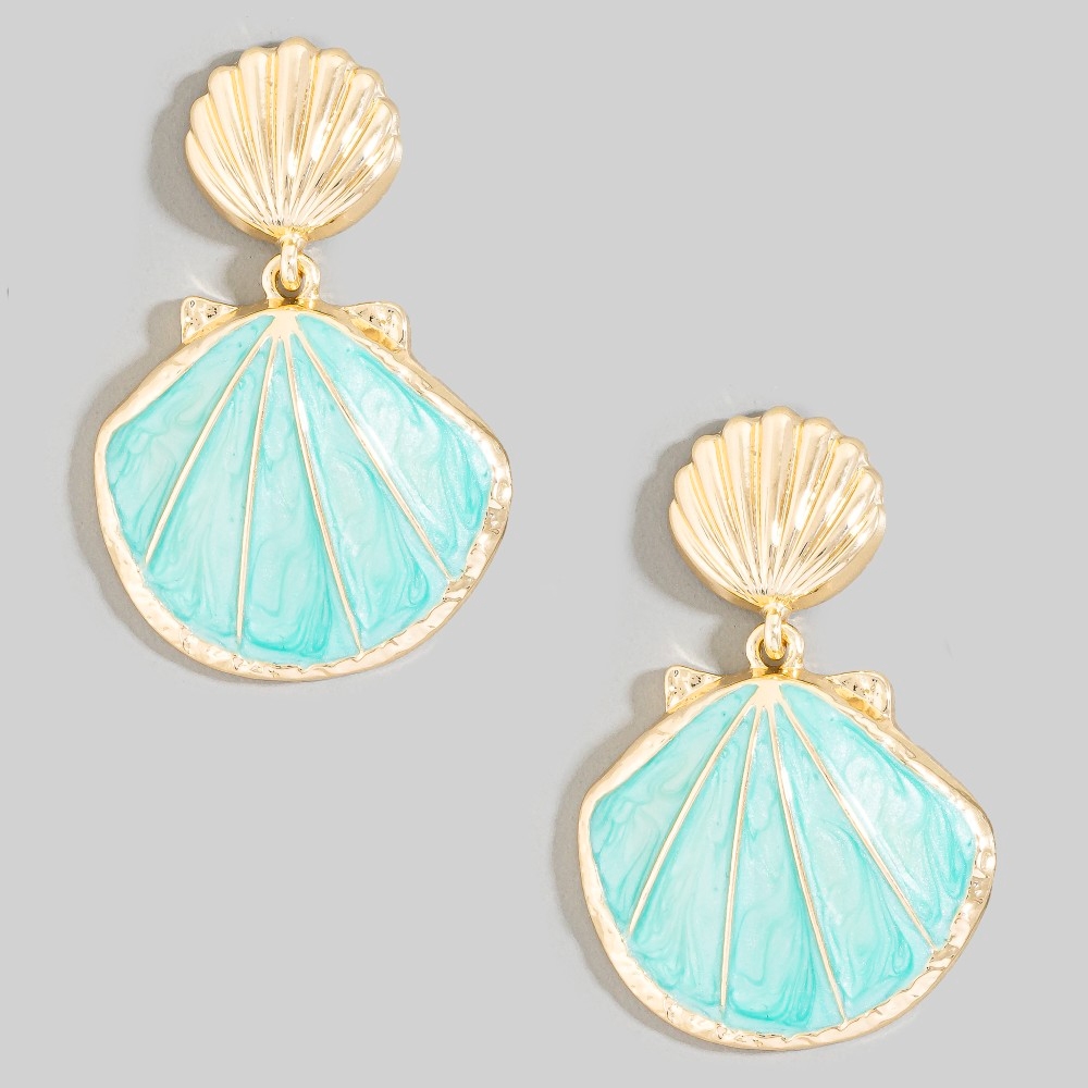 • Bold, daring, and endlessly stylish, this pair of drop earrings highlights a special enamel double seashell design. A must-have pair of drop earrings that effortlessly enhances your style, no matter the occasion. Available in TQ, WHT. This item is sold in packs of 1.