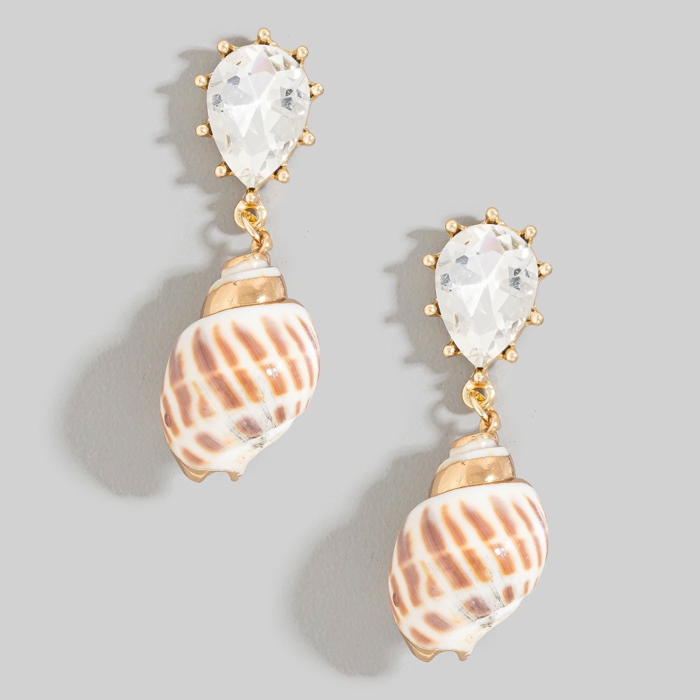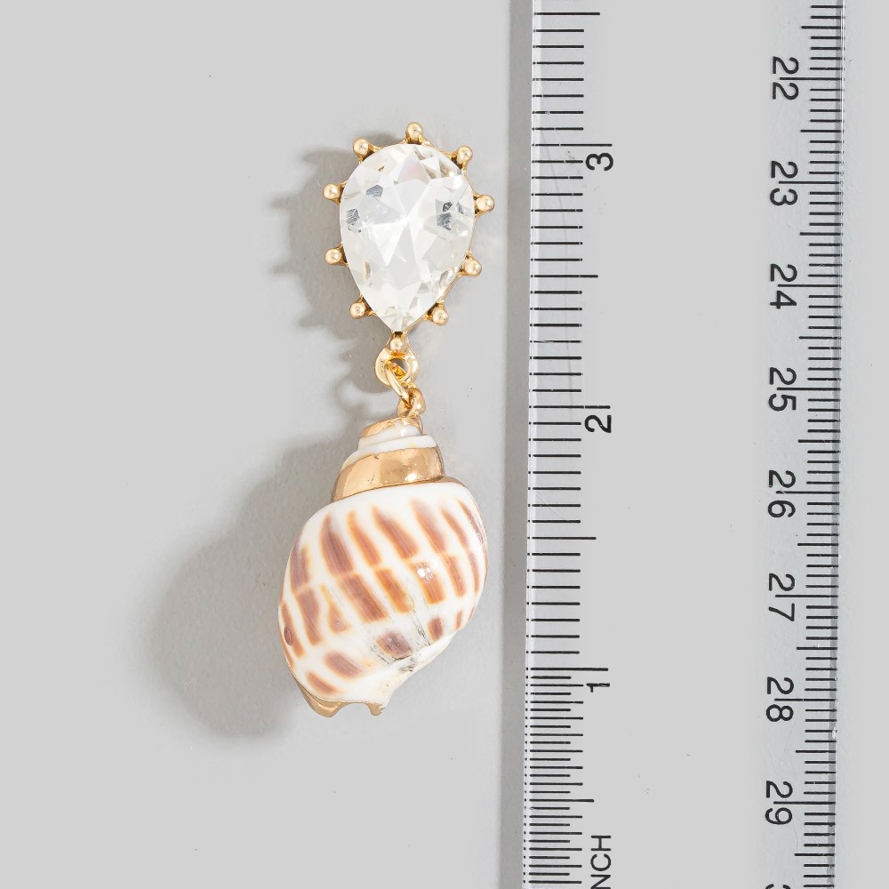 Metallic Accent Sea Shell And Fridge Stud Dangle Earrings