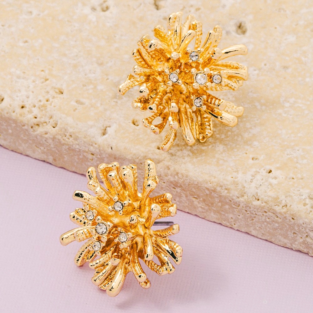 - A must-have for any fashion-forward individual, this pair of earrings showcases an alluring sea coral reef stud metallic design. This item is the perfect way to add some texture and interest to any outfit. Available in G. This item is sold in packs of 1.
