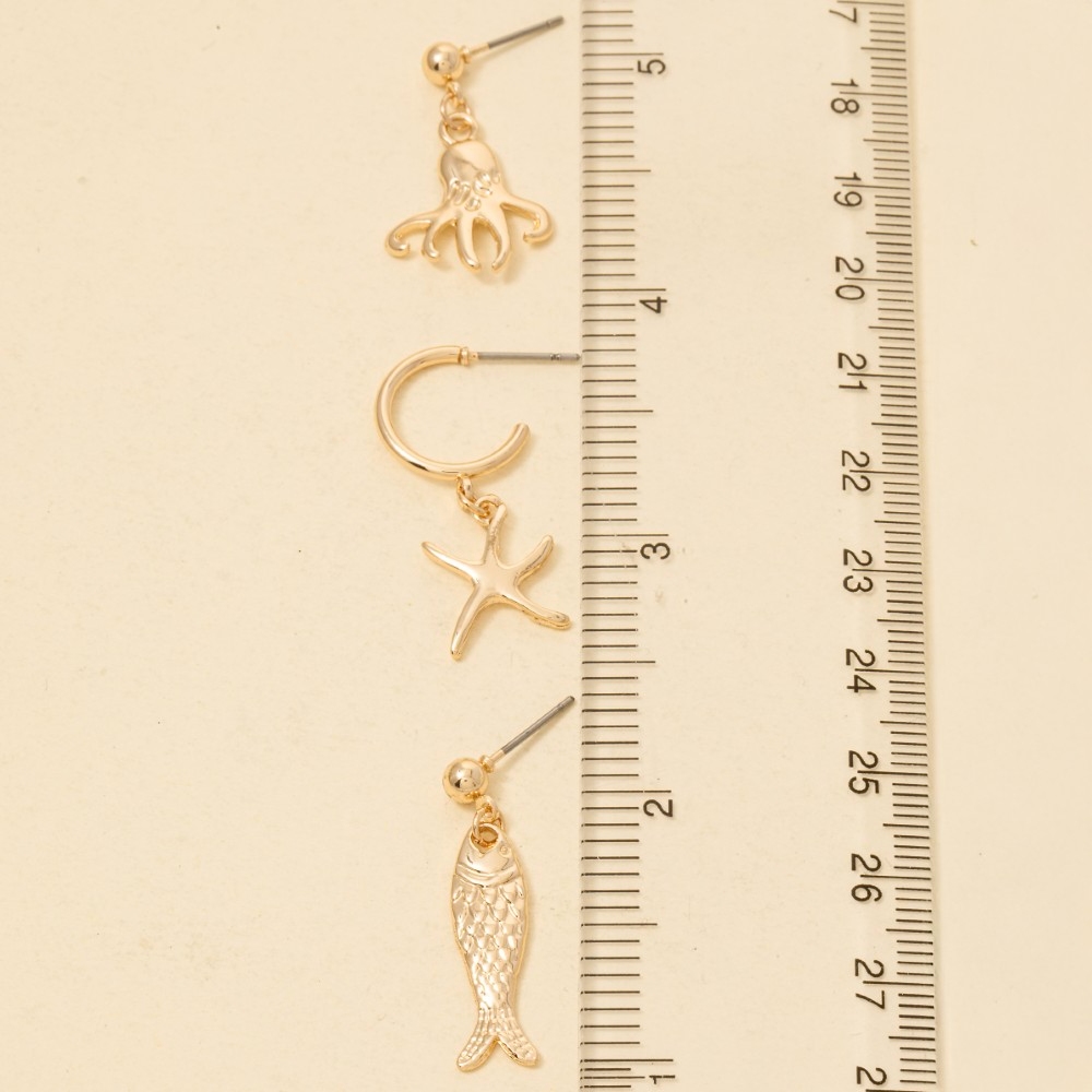 - Make a statement, this pair of hoop earrings showcases an alluring sea life charms set design. The perfect way to complete any outfit, whether you're dressing up or keeping it casual. Available in GD, SIL. This item is sold in packs of 1.