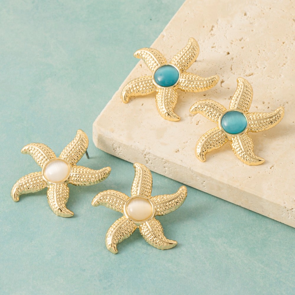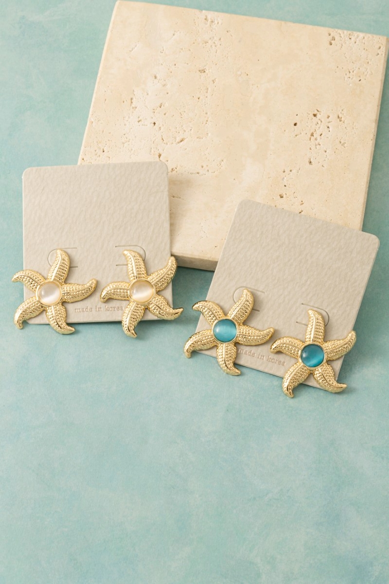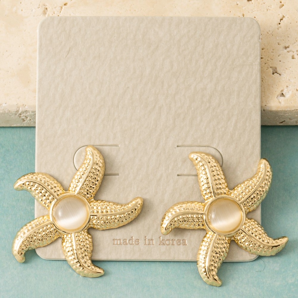 Perfectly versatile and endlessly stylish, this pair of stud earrings incorporates a flawless circle stone metallic starfish design. This versatile pair of stud earrings adds a touch of elegance to any outfit. Available in WHT. This item is sold in packs of 1.