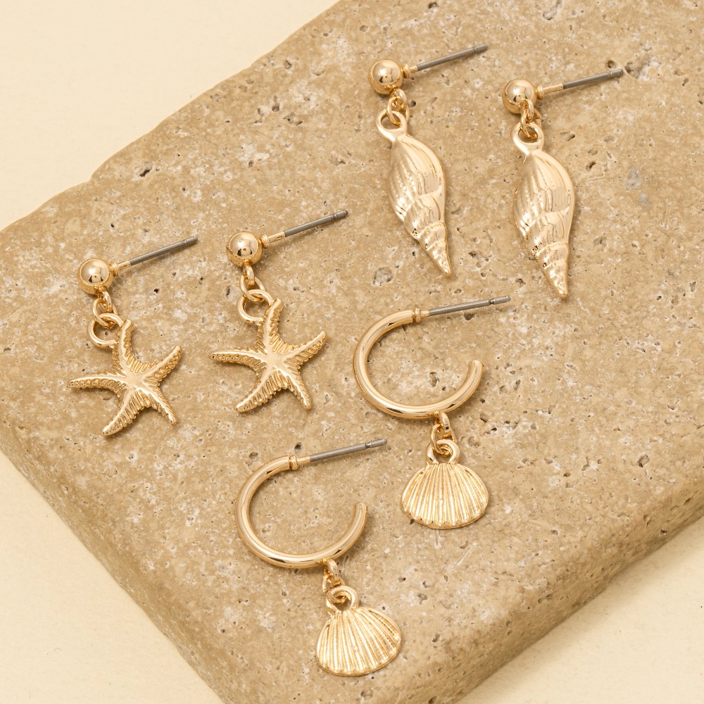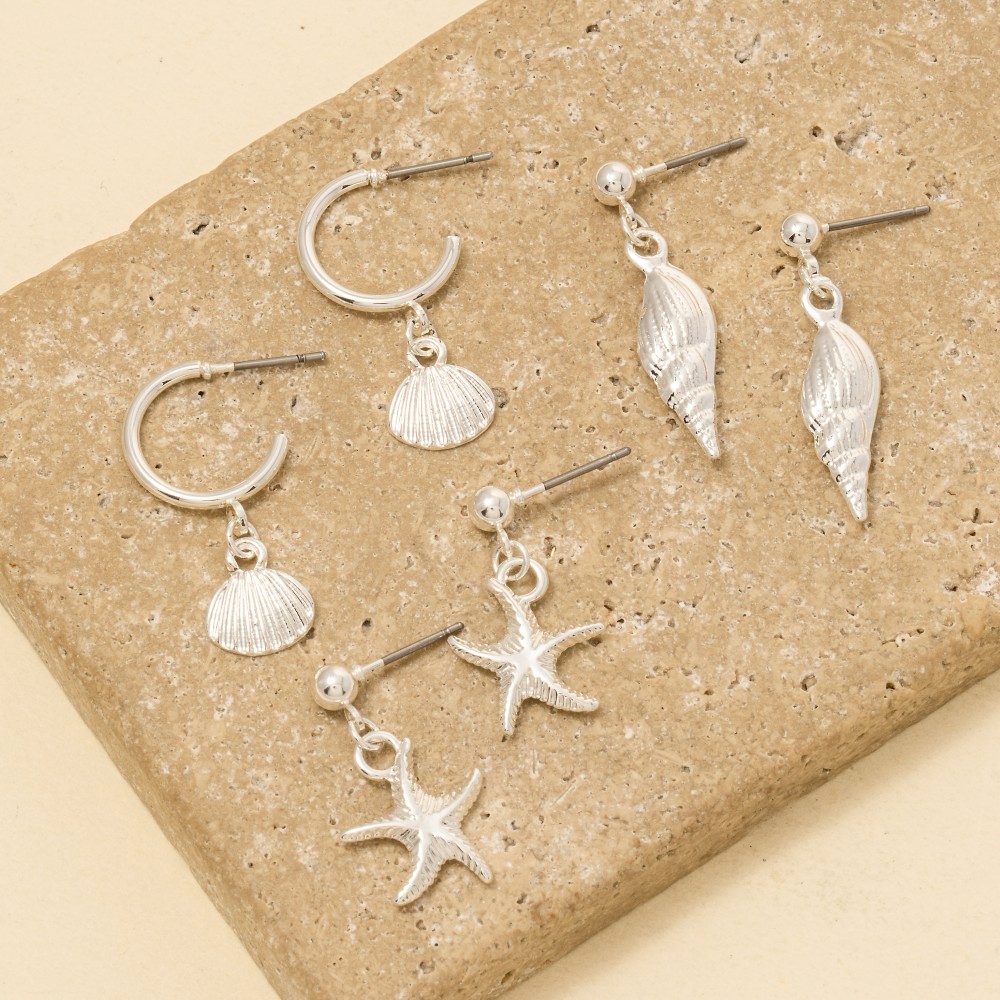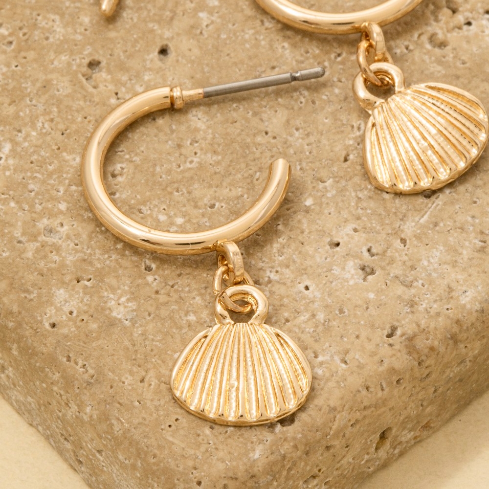 Add some edge to your wardrobe, this pair of hoop earrings emanates an elegant sea life shell charms set design. This item is perfect for adding some color and vibrancy to any outfit. Available in GD, SIL. This item is sold in packs of 1.