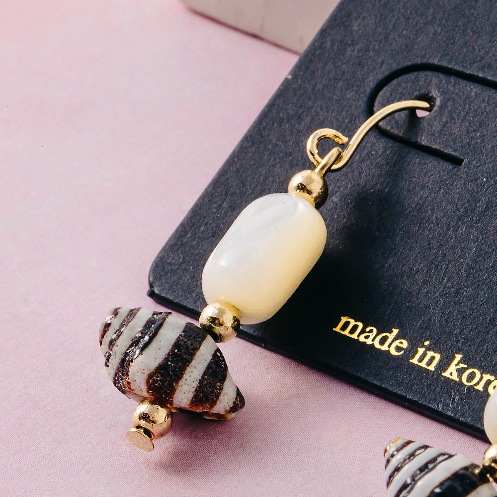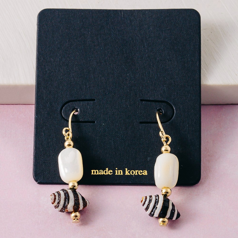 • This pair of dangle earrings is made with 10% Brass and 90% Shell.
