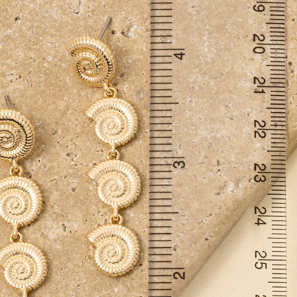 • This piece is the epitome of sophistication and elegance, this pair of drop earrings highlights a special tiered nautilus sea shell dangle design. This pair of drop earrings is an effortless way to add some personality to your outfit. Available in G2. This item is sold in packs of 1.