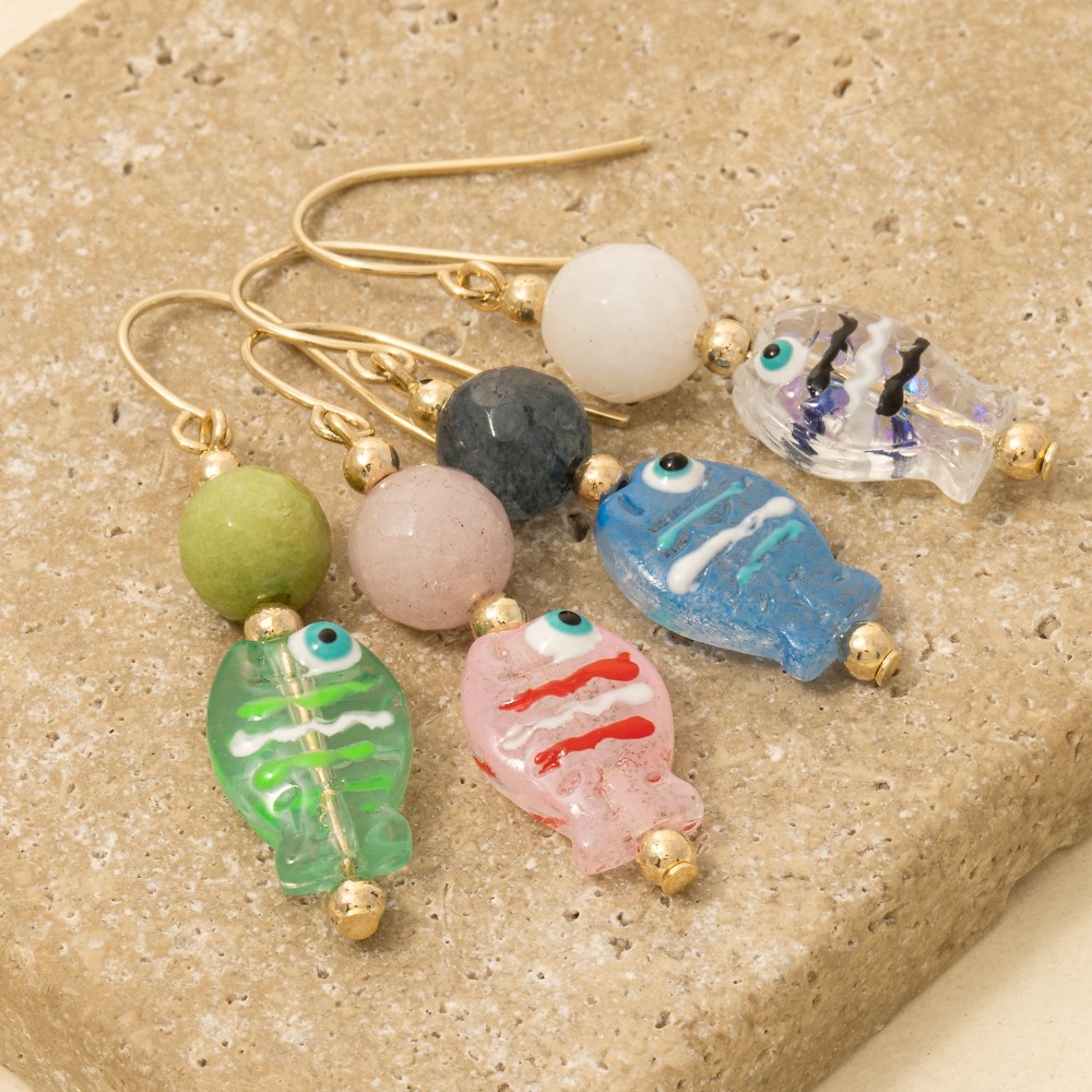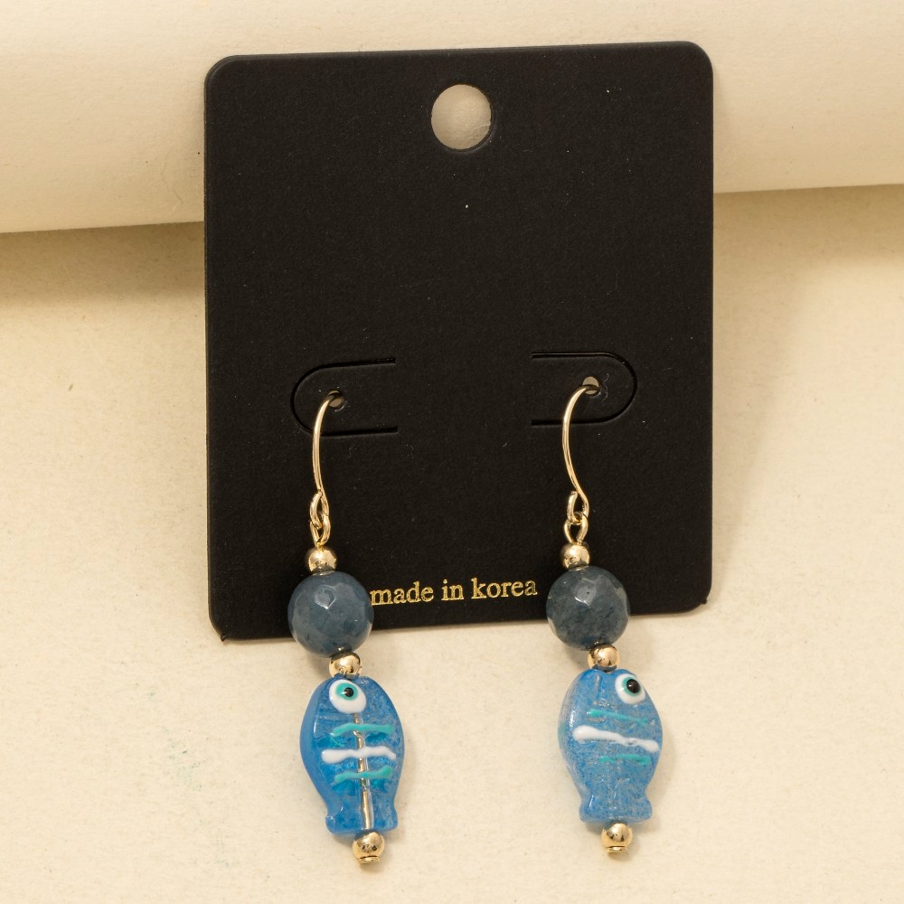 • The perfect way to complete any outfit, this pair of drop earrings encompasses a grand gemstone glass bead fish design. Discover a new level of fashion versatility as this pair of drop earrings effortlessly elevates the allure of your attire. Available in BL, CL, GN, PK. This item is sold in packs of 1.