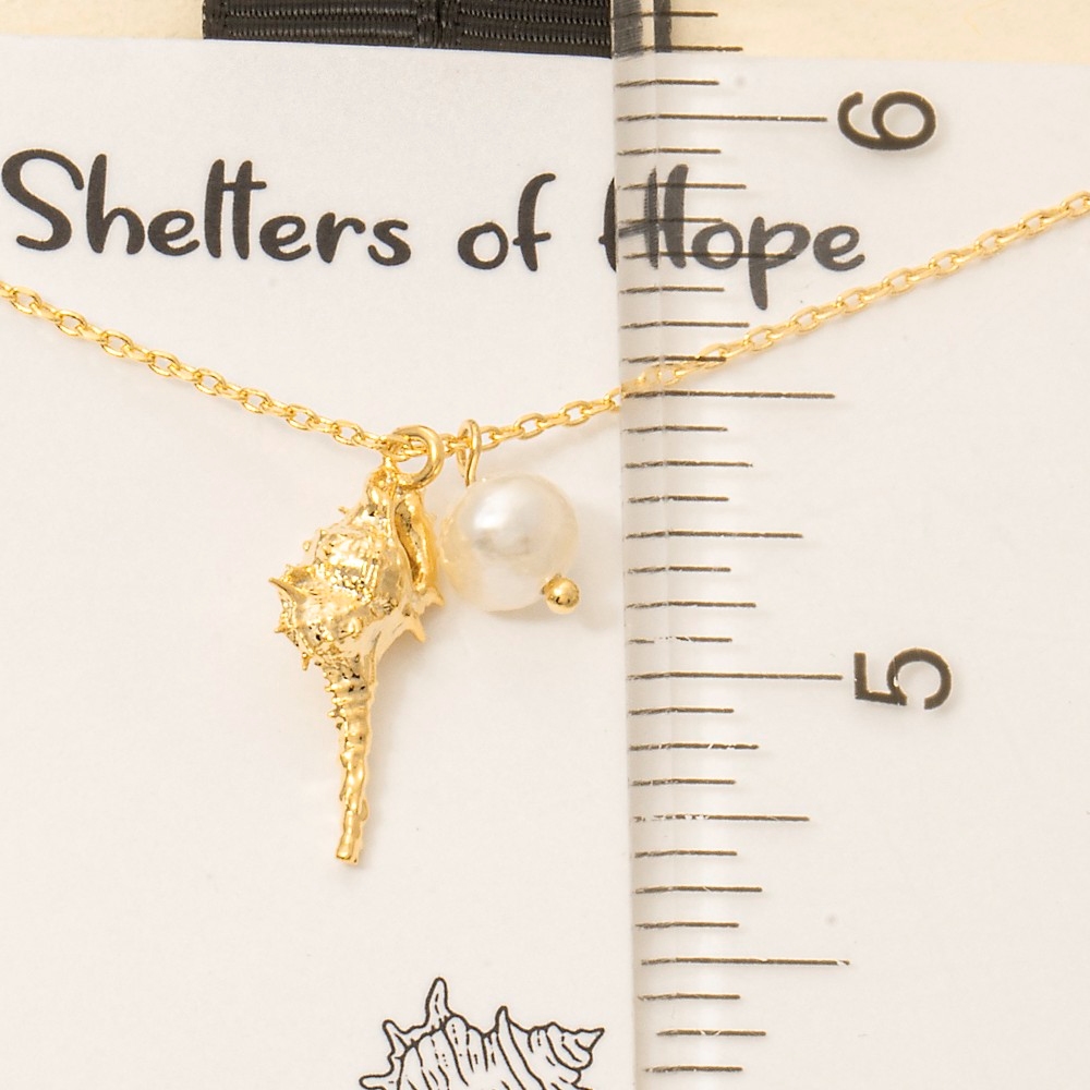 • The perfect way to elevate any outfit, this chain necklace displays a unique gold dipped conch and pearl bead charm design. Elevate your fashion game with this versatile chain necklace, seamlessly integrating into your signature style. Available in GDCRM. This item is sold in packs of 1.