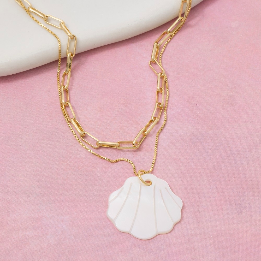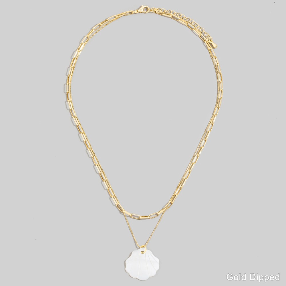 • This is the perfect pendant necklace for any occasion pendant necklace offers a remarkable gold dipped layered chains shell design. Elevate your everyday style with this versatile pendant necklace, a simple yet impactful addition to your fashion repertoire. This item is sold in packs of 1.