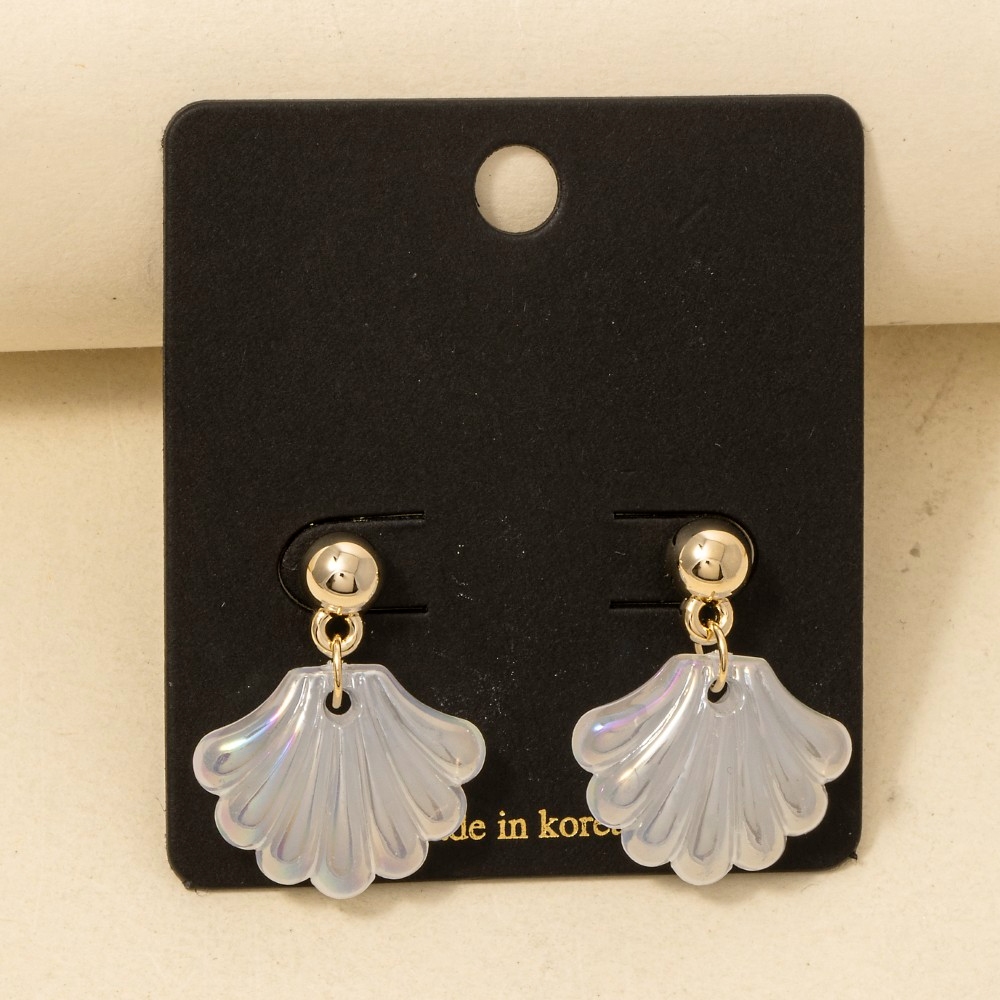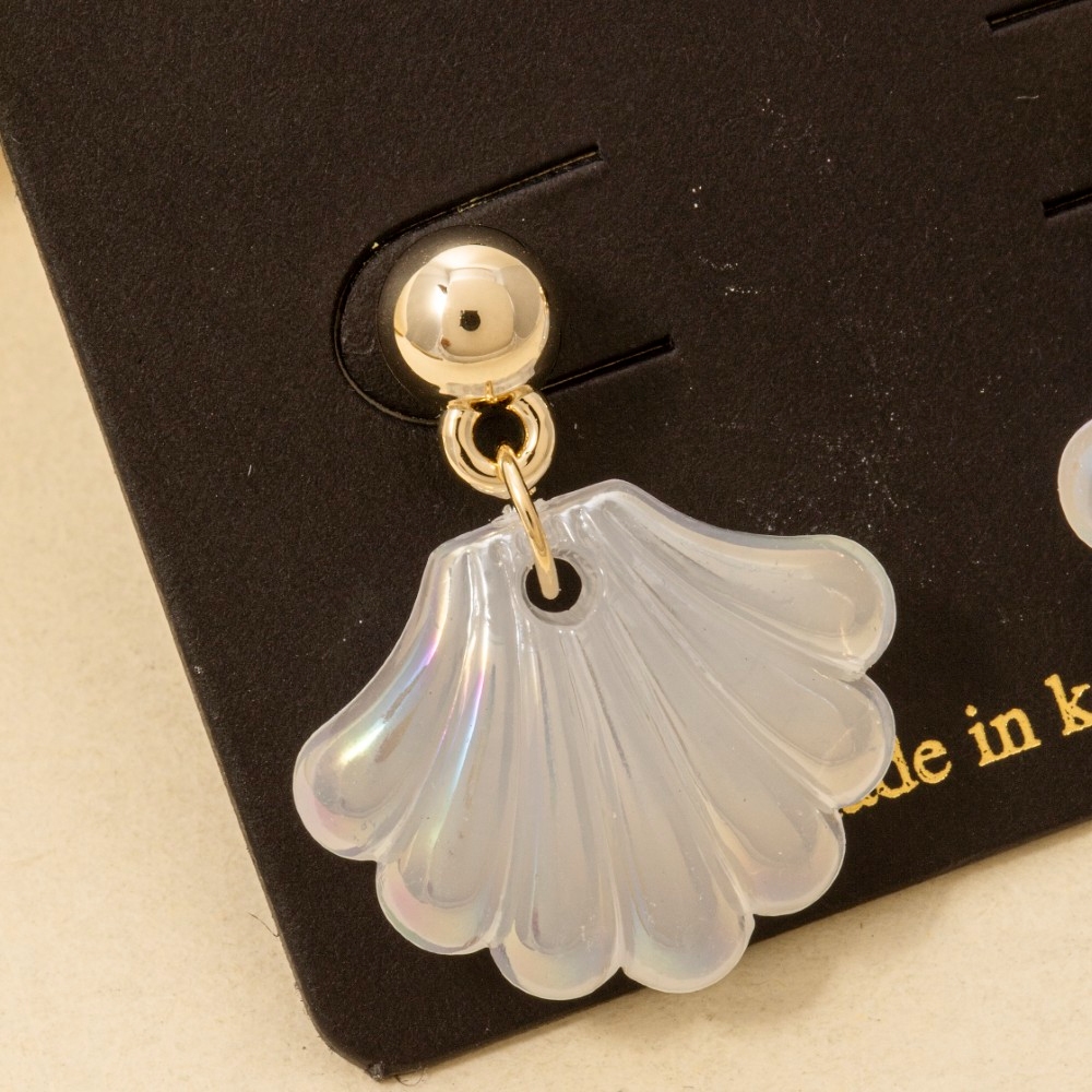 Metallic Accent Sea Shell And Fridge Stud Dangle Earrings